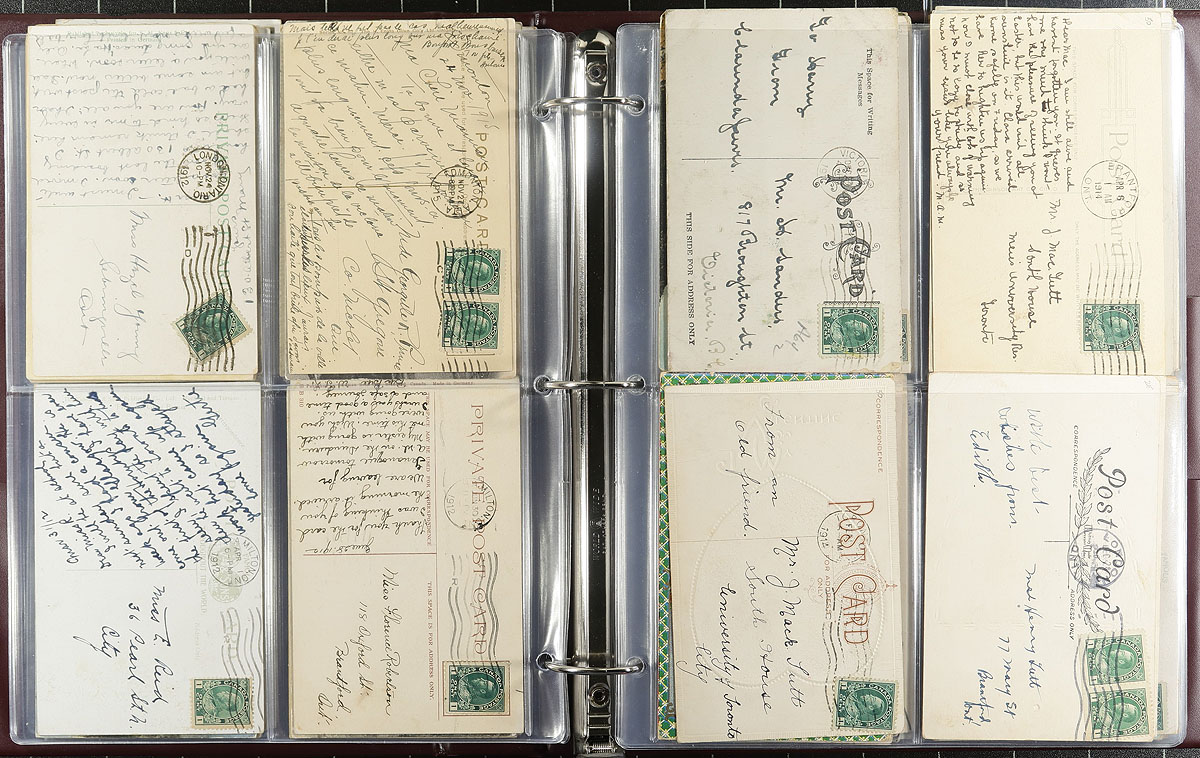 Admiral Postal History / Postcard Accumulation Part 4. A collector's journey of collecting Admiral franked postcards. This portion consists of two full binders, with 534 postcards, all selected for George V Admiral frankings and cancelled with MACHINE postmarks from across the country. A great opportunity for research here, as these machine cancels of the Admiral period are gaining traction in the postal history world, as "finds" can often be hiding in plain sight with new early / late dates. Displayed on clear 4-pocket pages, all pages (except the first) arranged with 8 cards per-page, with the postally used side showing outwards. An excellent opportunity for the postmark or Admiral hound, with 4 large lots offered in this sale. Estimate =