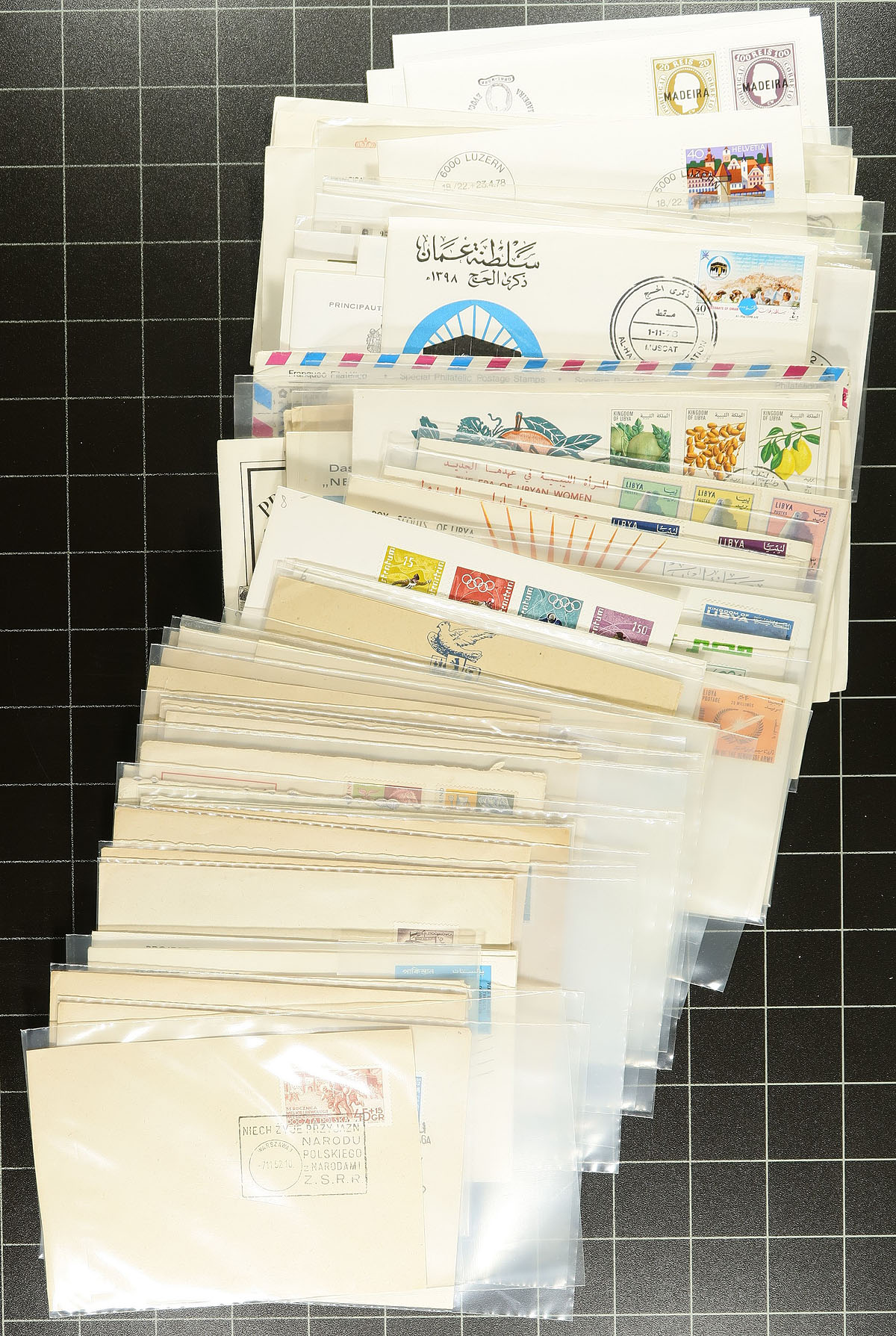 Bankers Box # 2. A hoard of roughly 1,500 worldwide covers and postcards, generally ranging from early to modern, containing a bit of everything from across the globe, offered as received. We note a mix of both commercial mail and first day covers or commemorative covers, along with picture postcards, rates, postal stationery, corner cards, etc. A nice lot with much to offer and would make great "dollar bin" stock. The second of three boxes, all offered in this sale. Estimate =