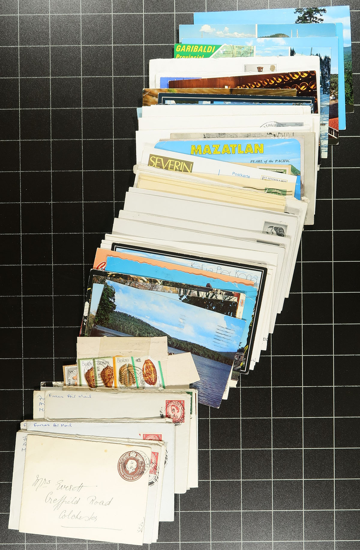Bankers Box # 3. A hoard of roughly 1,500 worldwide covers and postcards, generally ranging from early to modern, containing a bit of everything from across the globe, offered as received. We note a mix of both commercial mail and first day covers or commemorative covers, along with picture postcards, rates, postal stationery, corner cards, etc. A nice lot with much to offer and would make great "dollar bin" stock. The third and final box of this consignment, all offered in this sale. Estimate =