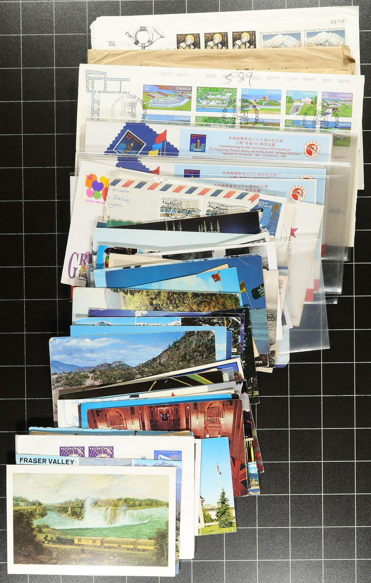 Bankers Box # 3. A hoard of roughly 1,500 worldwide covers and postcards, generally ranging from early to modern, containing a bit of everything from across the globe, offered as received. We note a mix of both commercial mail and first day covers or commemorative covers, along with picture postcards, rates, postal stationery, corner cards, etc. A nice lot with much to offer and would make great "dollar bin" stock. The third and final box of this consignment, all offered in this sale. Estimate =