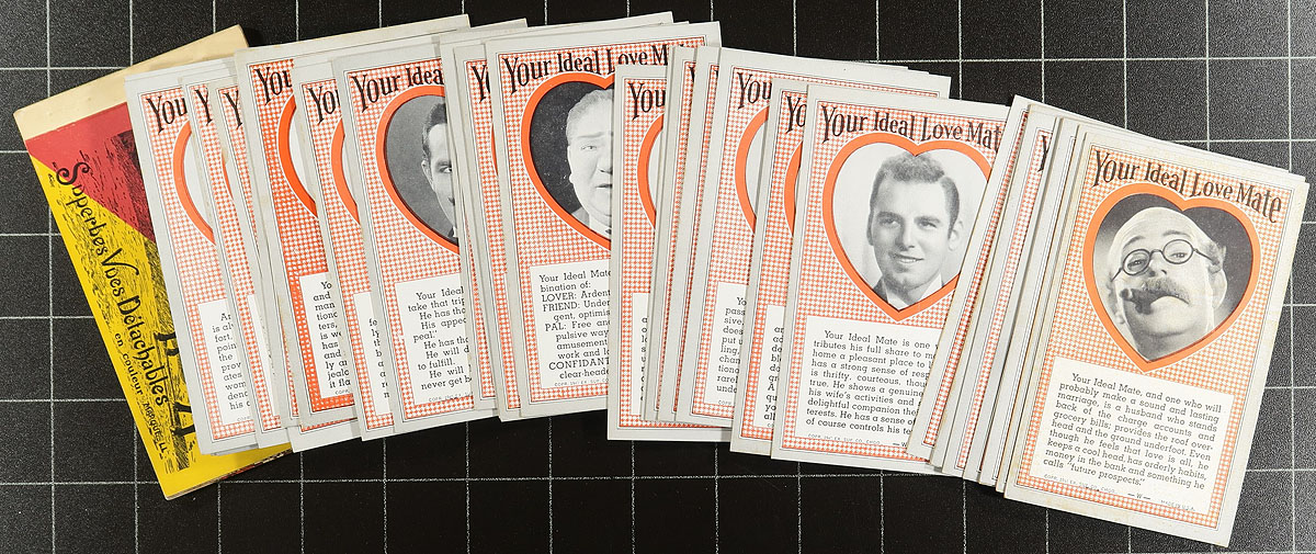 A "pizza box" of diverse mostly non-postal related ephemera, from a local estate. Includes (among other things), Prime Minister prints, several large photographs (including 5th Regiment Band WWI Victoria), Victoria BC "Tone Test Recital" programme (1921), Waldo BC 1923 School Roll of Honor certificate, letterheads, ship menus, photo negatives, early advertising cards, a stack of "Your Ideal Love Mate" cards (from an early amusement machine?), maps, greeting cards (AND MUCH MORE). Take a good look at the pictures to appreciate the scope of the group. Lots of value here if sorted out and individually sold. Estimate =
