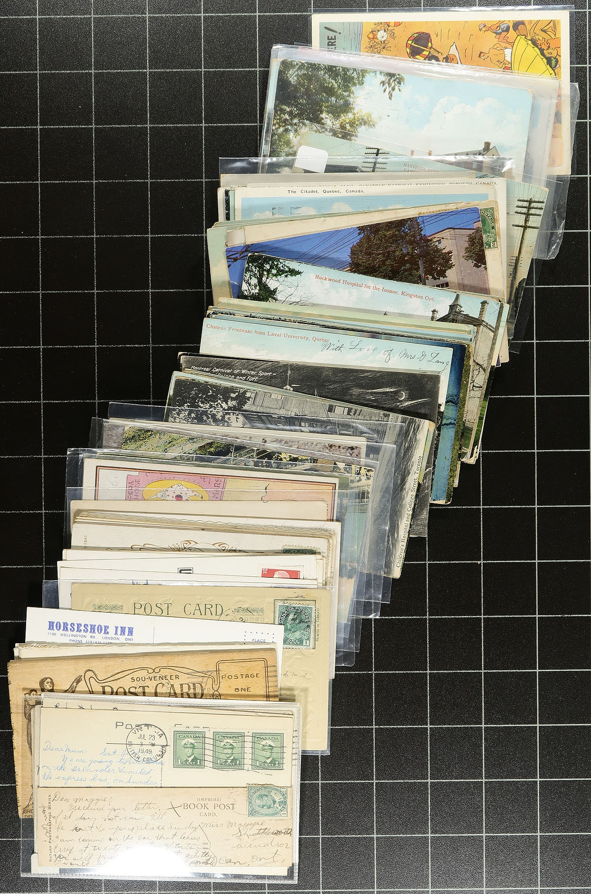 Bankers Box of Canadian Covers and Postcards. A second helping from a local estate, which includes postmark interest, picture postcards, rates, slogans, town cancels etc. Primarily commercial mail, with the odd philatelic item mixed in. An excellent sorter lot, and while there likely won't be any really valuable individual items here, there is just a lot of them (at least 1500 items) which would make perfect "Dollar Bin" fodder. Primarily Edward to early QEII period. Estimate =