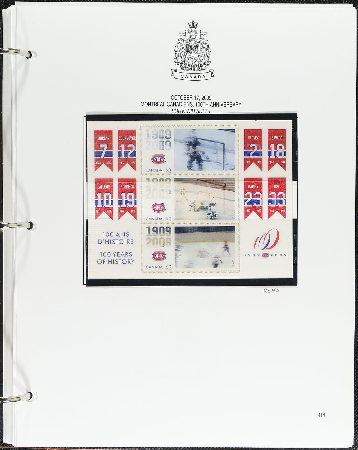 Modern Mint Never Hinged Collection 2005-2012 arranged on computer generated pages with a deluxe 3-ring binder. A mix of both mint and used, with the odd FDC mixed in as well. A variety of formats including singles, souvenir sheets, coils and die-cuts. Very clean material, that has conservatively been value for the total usable postage value only. Total face value =