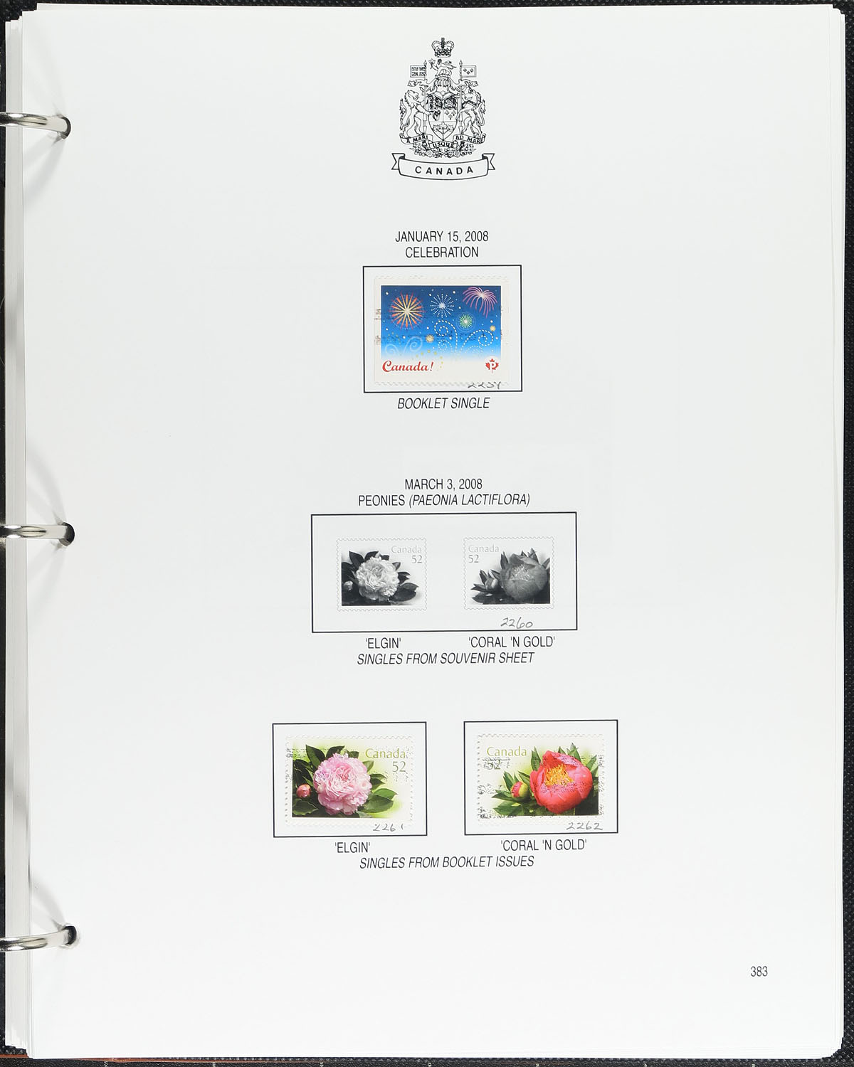 Modern Mint Never Hinged Collection 2005-2012 arranged on computer generated pages with a deluxe 3-ring binder. A mix of both mint and used, with the odd FDC mixed in as well. A variety of formats including singles, souvenir sheets, coils and die-cuts. Very clean material, that has conservatively been value for the total usable postage value only. Total face value =