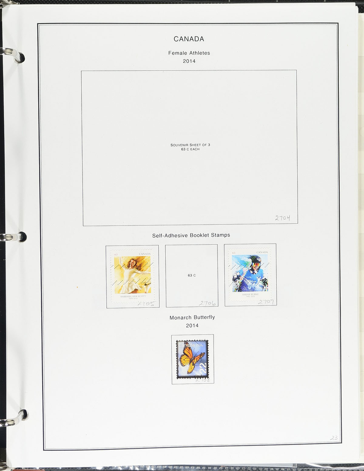 Modern Mint Never Hinged Collection 2013-2015 arranged on computer generated pages with a deluxe 3-ring binder. A mix of both mint and used, with the odd FDC mixed in as well. A variety of formats including singles, souvenir sheets, coils and die-cuts. Very clean material, that has conservatively been value for the total usable postage value only. Total face value =