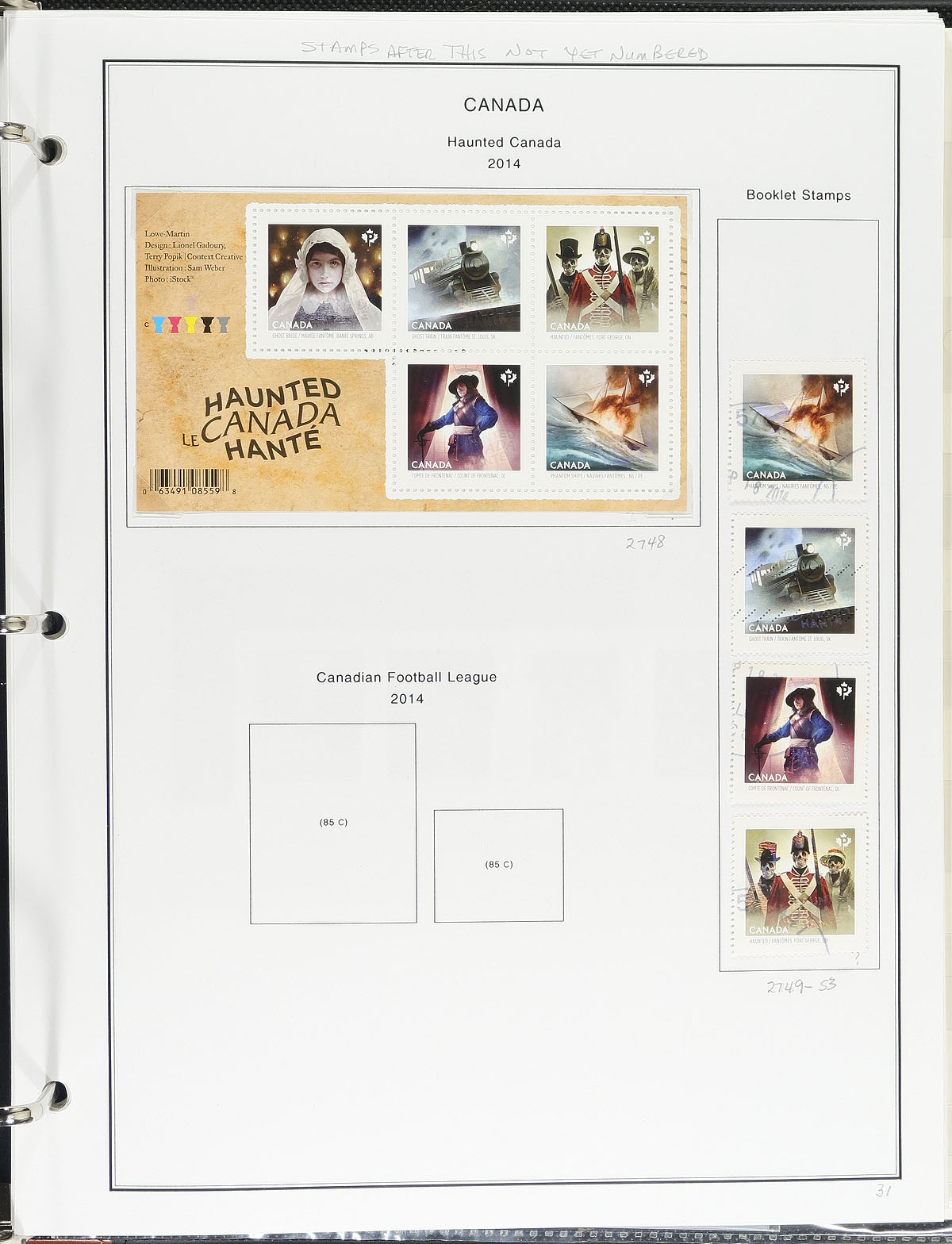Modern Mint Never Hinged Collection 2013-2015 arranged on computer generated pages with a deluxe 3-ring binder. A mix of both mint and used, with the odd FDC mixed in as well. A variety of formats including singles, souvenir sheets, coils and die-cuts. Very clean material, that has conservatively been value for the total usable postage value only. Total face value =