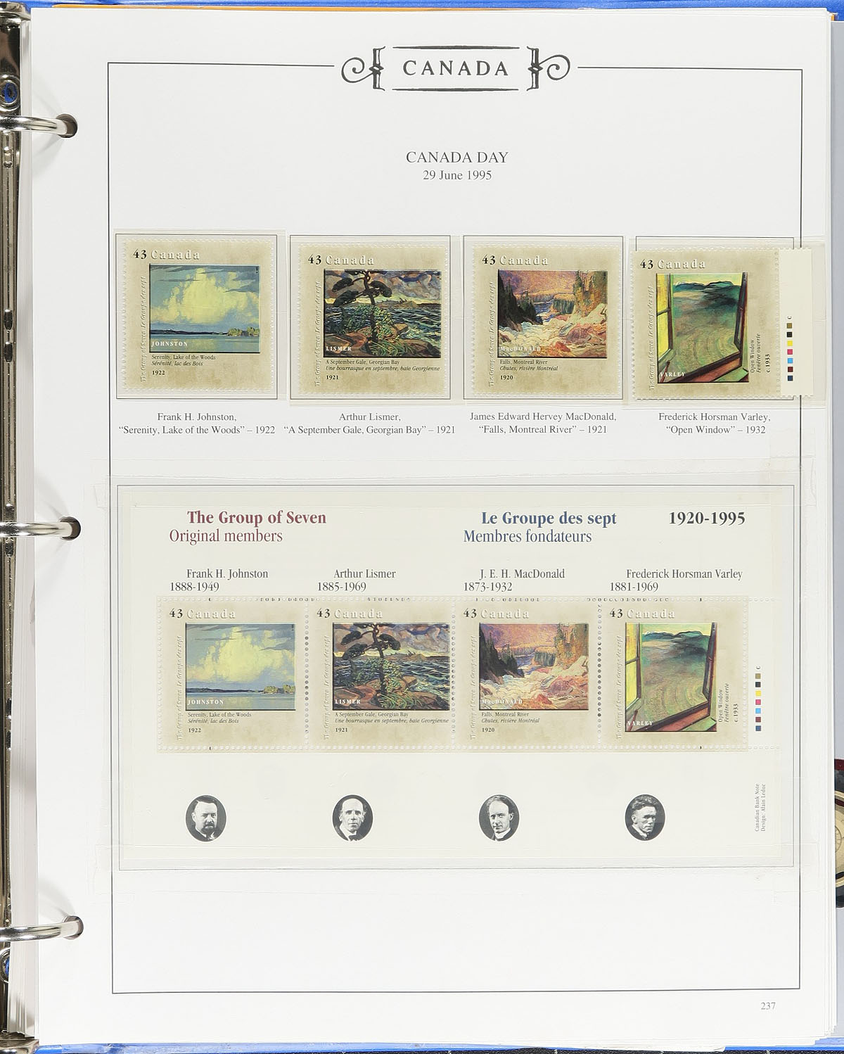 Modern Mint Never Hinged Collection 1988-1998 within a padded "Dominion of Canada" stamp album. An attractive "one of each" collection, including compete booklets, $8.00 Grizzly, complete booklets, panes, 1990 Petro Canada sheetlets and a smattering of complimentary used and FDC. Very clean material, conservatively valued for the total usable postage value only. Total face value =