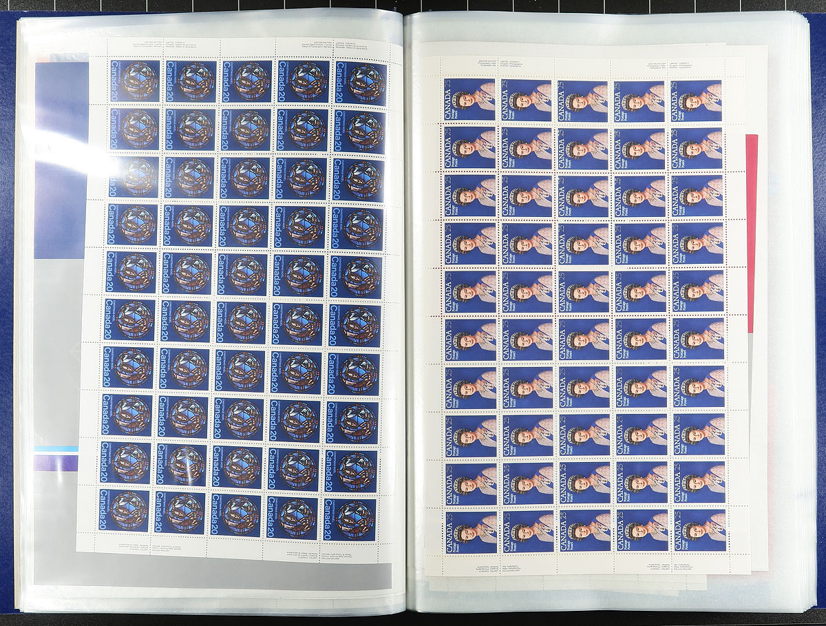 Mint Sheet Holding. A mint sheet album (with slipcase) containing 29 complete mint Never Hinged panes for the 1975-1981 period (with one "odd duck", the 1947 Alexander Graham Bell issue). Clean material, often with the Post Office advertising sheet from when sealed in plastic. Conservatively value for the total usable potage value only. Total face value =