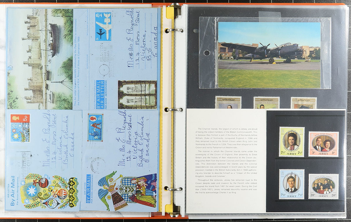 Outstanding mostly used collection of "one of each" as assembled by a lifetime hobbyist, that started collecting worldwide stamps as a child and continued on for 70+ years, collecting for the pure passion of obtaining as many worldwide stamps as possible. Arrange on home-made pages within 7 matching "marble" binders, there is a total of 13,258 stamps here (yes, we counted them), with strength in Canada / USA and Great Britain, but also a fair showing of many other countries, just to lesser extents. While there might not be many $10.00+ stamps here, the value is in the sheer quantity of all-different issues, with a very clean offering of many countries, which can run from earlier issues up to about 2005. A fun lot to sort through. Estimate =