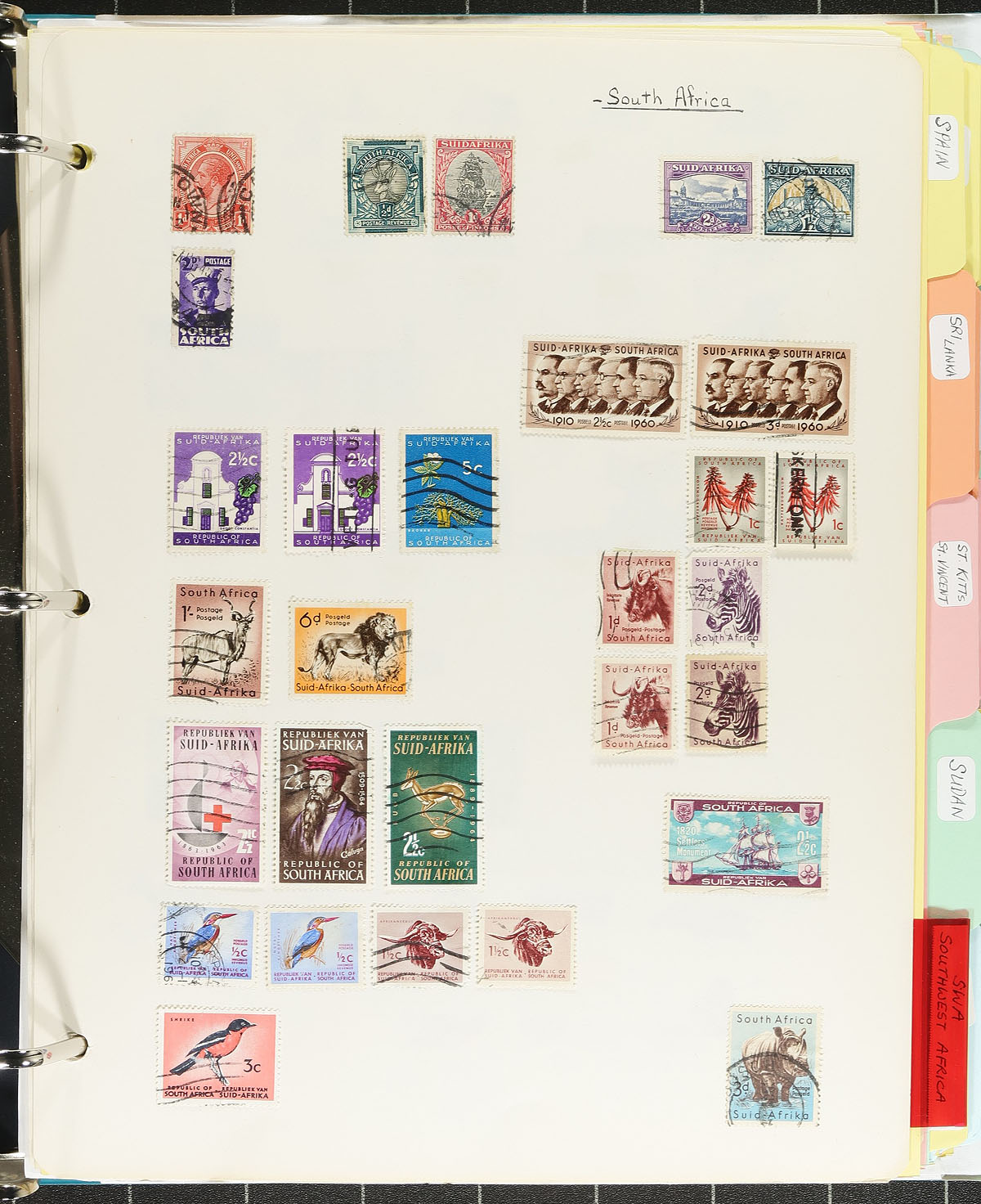 Outstanding mostly used collection of "one of each" as assembled by a lifetime hobbyist, that started collecting worldwide stamps as a child and continued on for 70+ years, collecting for the pure passion of obtaining as many worldwide stamps as possible. Arrange on home-made pages within 7 matching "marble" binders, there is a total of 13,258 stamps here (yes, we counted them), with strength in Canada / USA and Great Britain, but also a fair showing of many other countries, just to lesser extents. While there might not be many $10.00+ stamps here, the value is in the sheer quantity of all-different issues, with a very clean offering of many countries, which can run from earlier issues up to about 2005. A fun lot to sort through. Estimate =