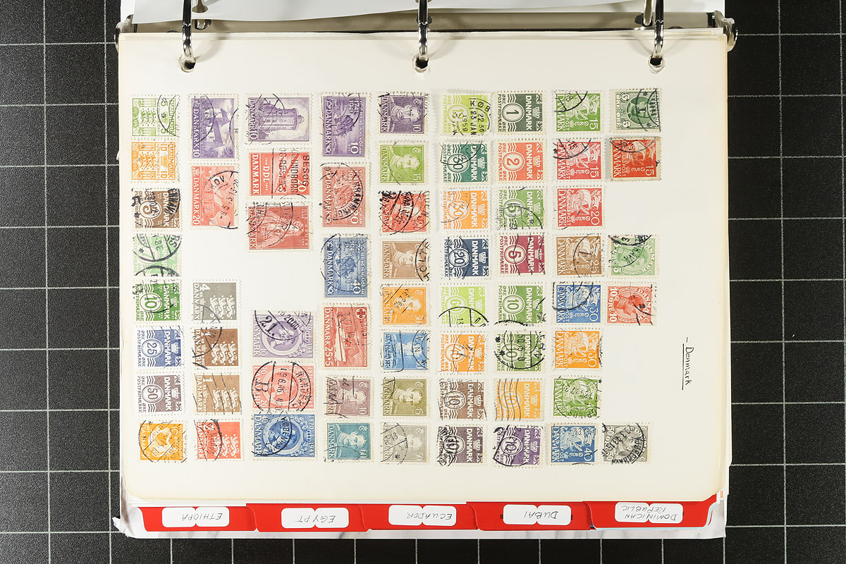 Outstanding mostly used collection of "one of each" as assembled by a lifetime hobbyist, that started collecting worldwide stamps as a child and continued on for 70+ years, collecting for the pure passion of obtaining as many worldwide stamps as possible. Arrange on home-made pages within 7 matching "marble" binders, there is a total of 13,258 stamps here (yes, we counted them), with strength in Canada / USA and Great Britain, but also a fair showing of many other countries, just to lesser extents. While there might not be many $10.00+ stamps here, the value is in the sheer quantity of all-different issues, with a very clean offering of many countries, which can run from earlier issues up to about 2005. A fun lot to sort through. Estimate =
