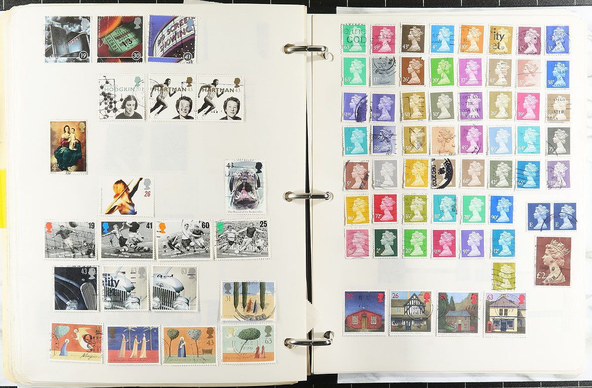 Outstanding mostly used collection of "one of each" as assembled by a lifetime hobbyist, that started collecting worldwide stamps as a child and continued on for 70+ years, collecting for the pure passion of obtaining as many worldwide stamps as possible. Arrange on home-made pages within 7 matching "marble" binders, there is a total of 13,258 stamps here (yes, we counted them), with strength in Canada / USA and Great Britain, but also a fair showing of many other countries, just to lesser extents. While there might not be many $10.00+ stamps here, the value is in the sheer quantity of all-different issues, with a very clean offering of many countries, which can run from earlier issues up to about 2005. A fun lot to sort through. Estimate =