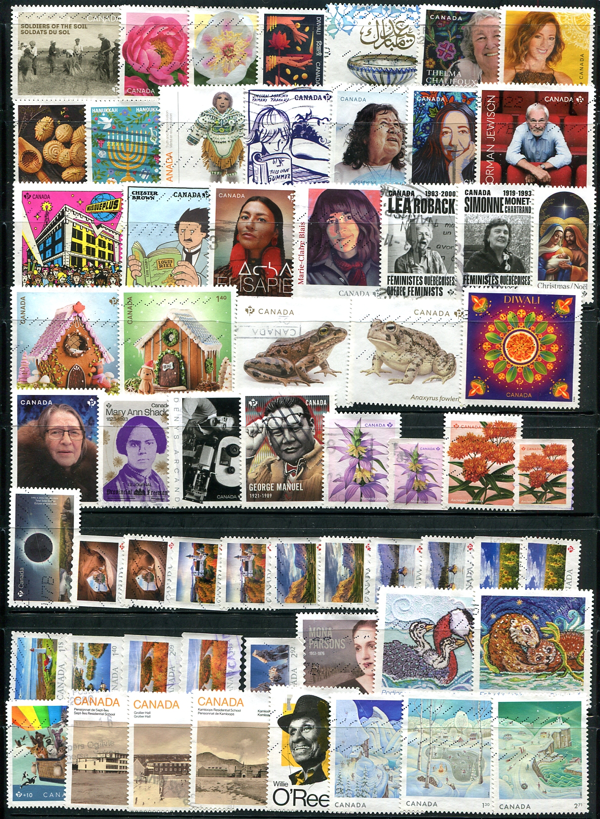 Recent Used. Selection of 202 different from beginning of COVID in 2020 to latest 2025 issues including high values like new 2.61 definitive, Christmas high values, Flying Postal Truck only issued to postal employees, and 9 different personal postage issues with one 1.30 value. The best offering of these we have ever had, and so hard to find with hardly anyone using postage stamps anymore! Estimate =