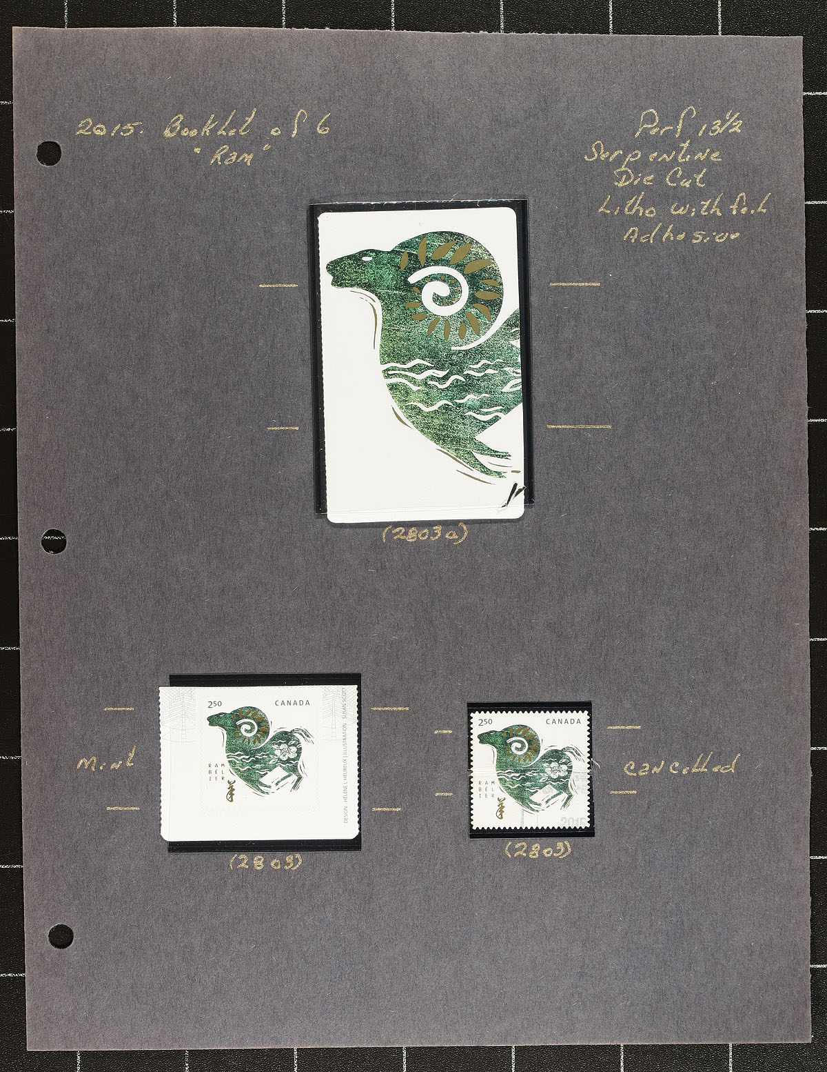 Lovely collection of primarily mint never hinged "Lunar New Year- Year of the Ram", January 2015, covering Unitrade #s 2801-2803, all in hingeless mounts in 18 well described pages. The collection contains mint and used singles (including booklet stamps), 2 mint sheets, matched set of mint plate blocks, mint and used souvenir sheets, booklets, and a few first day covers. Face value alone totals $162 (including 81x "P" value stamps). A lovely collection for any Canada collector. 2024 Unitrade =