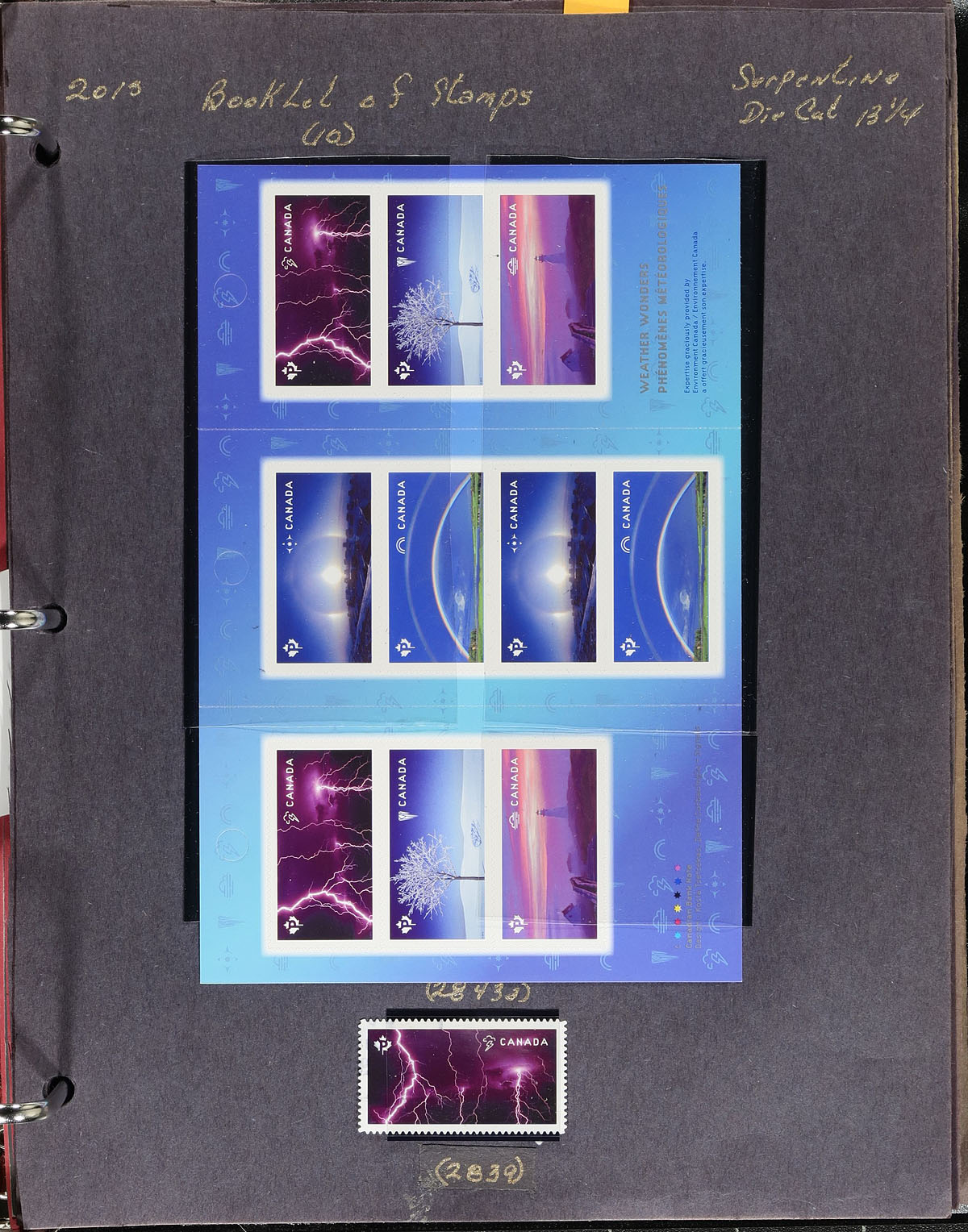 Clean collection of primarily mint never hinged Canada, from May to June 2015, covering Unitrade #s 2829-2843, all in hingeless mounts in roughly 30 well described pages housed in a binder. The collection primarily contains mint and used singles (including booklet stamps), booklet panes, mint and used souvenir sheets, and roughly 10 first day covers (most having lower mainland B.C. postmarks. We note a few items cataloguing $15 and up. Face value alone totals $219.00 (noting 178x "P" stamps). A very nice lot for all Canada collectors. 2024 Unitrade =
