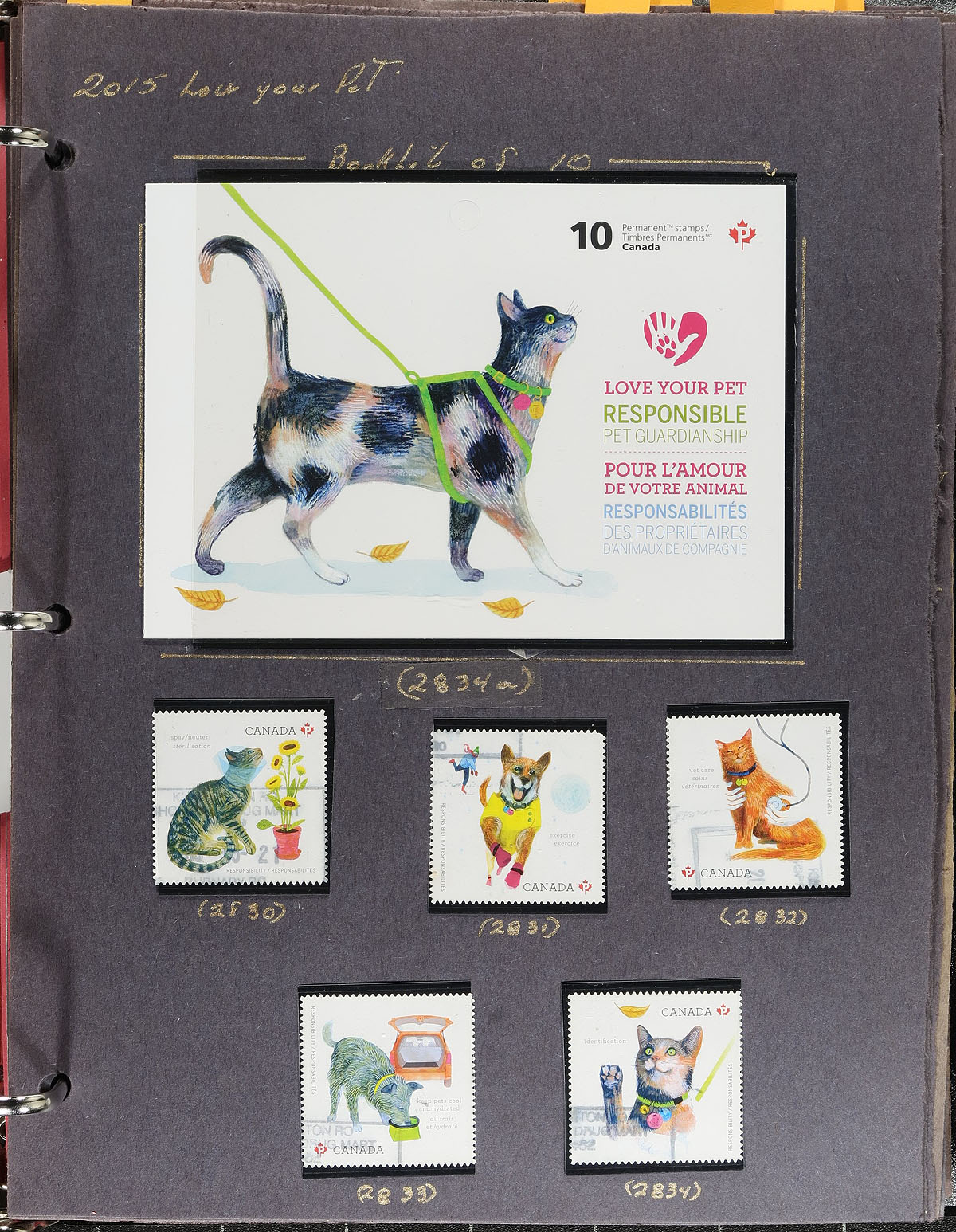 Clean collection of primarily mint never hinged Canada, from May to June 2015, covering Unitrade #s 2829-2843, all in hingeless mounts in roughly 30 well described pages housed in a binder. The collection primarily contains mint and used singles (including booklet stamps), booklet panes, mint and used souvenir sheets, and roughly 10 first day covers (most having lower mainland B.C. postmarks. We note a few items cataloguing $15 and up. Face value alone totals $219.00 (noting 178x "P" stamps). A very nice lot for all Canada collectors. 2024 Unitrade =