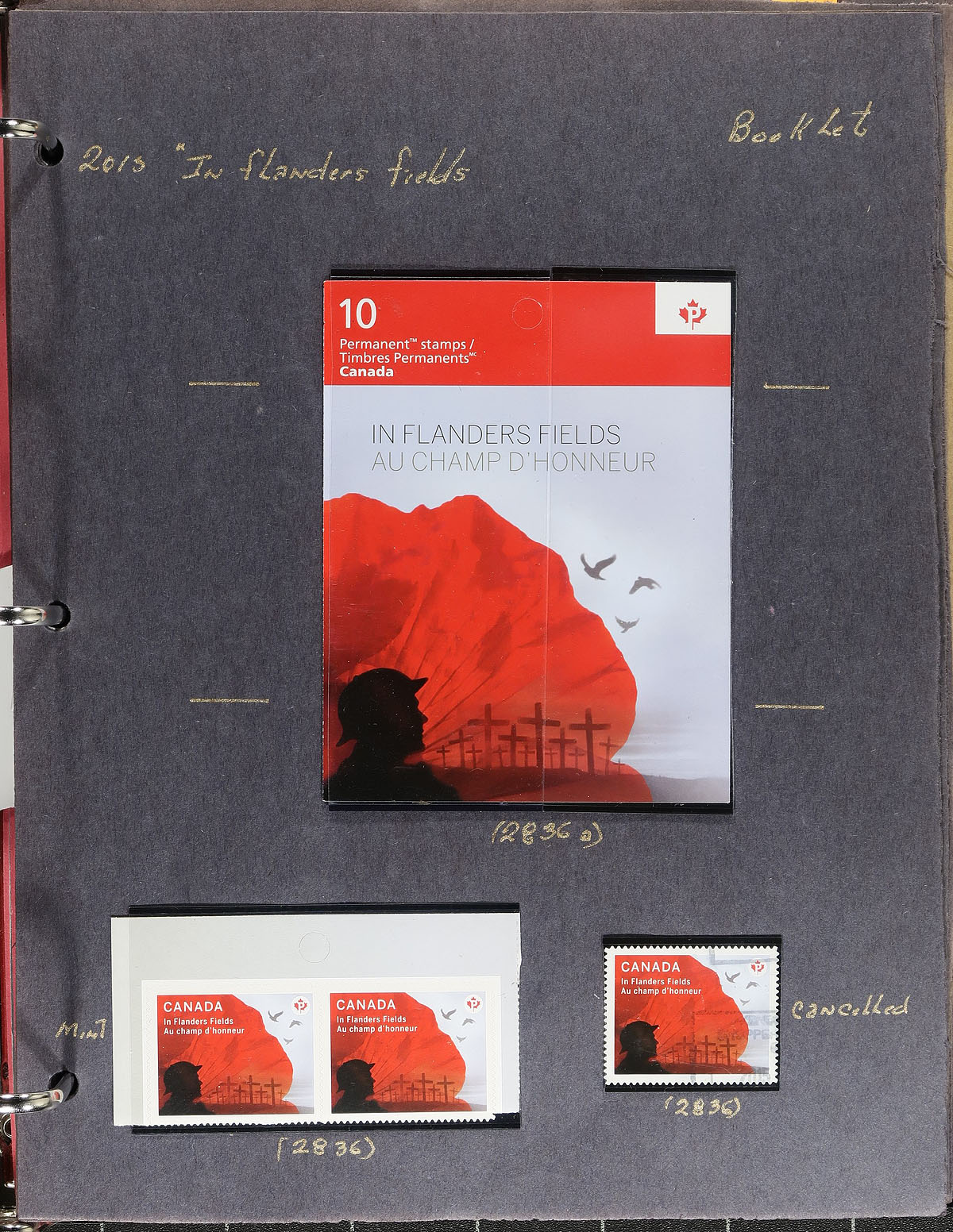Clean collection of primarily mint never hinged Canada, from May to June 2015, covering Unitrade #s 2829-2843, all in hingeless mounts in roughly 30 well described pages housed in a binder. The collection primarily contains mint and used singles (including booklet stamps), booklet panes, mint and used souvenir sheets, and roughly 10 first day covers (most having lower mainland B.C. postmarks. We note a few items cataloguing $15 and up. Face value alone totals $219.00 (noting 178x "P" stamps). A very nice lot for all Canada collectors. 2024 Unitrade =