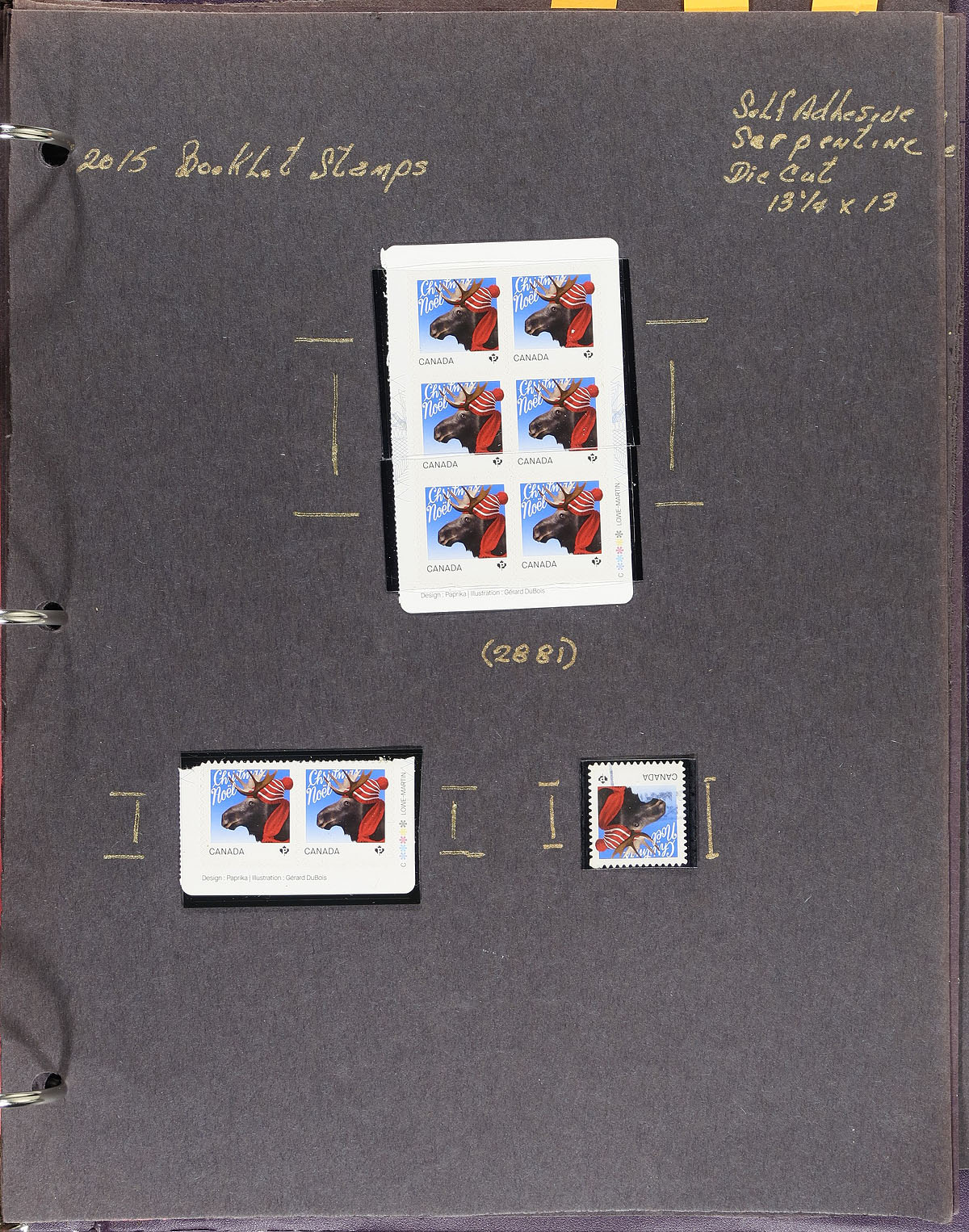 Lovely collection of primarily of mint never hinged Christmas issues, November 2015, covering Unitrade #s 2879-2883, all in hingeless mounts in roughly 15 well described pages housed in a binder. The collection primarily contains mint and used booklet stamps, part panes, complete booklets, and a few first day covers (most having lower mainland B.C. postmarks). We note a few items cataloguing $15 and up. Face value alone totals over $200.00 (noting 99x "P" stamps). A clean collection for the Canada Christmas collector. 2024 Unitrade =