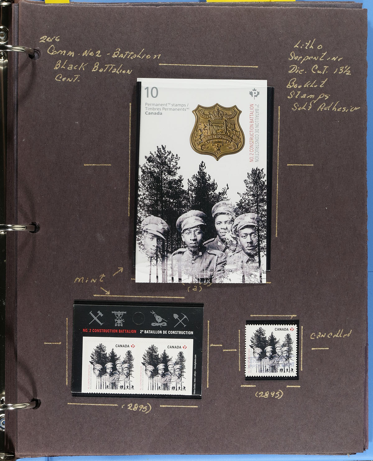 Lovely collection of primarily mint never hinged Canada, from February to March, 2016, covering Unitrade #s 2895-2901, all in hingeless mounts in roughly 25 well described pages housed in a binder. The collection primarily contains mint and used booklet stamps, coil singles, pairs, strips of 4, complete booklets and part panes, mint and used souvenir sheet, and roughly 10 first day covers (most having lower mainland B.C. postmarks). We note items cataloguing $15 and up. Face value alone totals $178.00 (including 144x "P" stamps). A nice lot for Canada collectors. 2024 Unitrade =