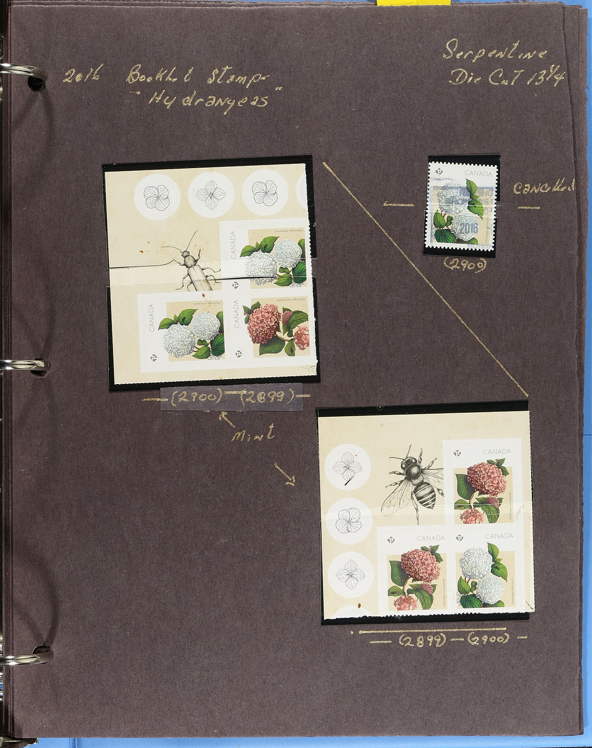 Lovely collection of primarily mint never hinged Canada, from February to March, 2016, covering Unitrade #s 2895-2901, all in hingeless mounts in roughly 25 well described pages housed in a binder. The collection primarily contains mint and used booklet stamps, coil singles, pairs, strips of 4, complete booklets and part panes, mint and used souvenir sheet, and roughly 10 first day covers (most having lower mainland B.C. postmarks). We note items cataloguing $15 and up. Face value alone totals $178.00 (including 144x "P" stamps). A nice lot for Canada collectors. 2024 Unitrade =
