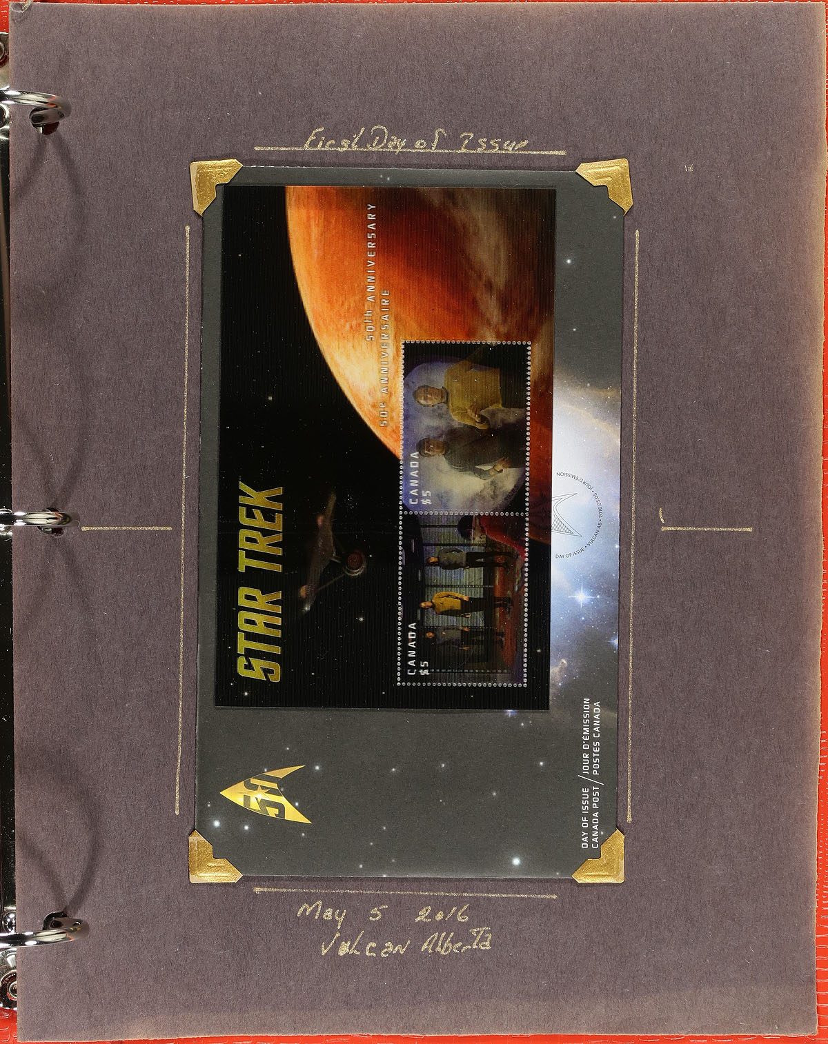 Highly specialized collection of primarily mint never hinged "Star Trek" issues, from May 2016, covering Unitrade #s 2911-2922, all in hingeless mounts in roughly 30 well described pages housed in a binder. The collection contains mint and used souvenir sheets, booklets and part panes, mint and used booklet stamps, coil singles, pairs, strips (including gutter strips), mint and used panes from the uncut press sheet, and roughly 15 first day covers (most having lower mainland B.C. postmarks). We note items cataloguing $15 and up. Face value alone totals $135.00 (noting 75x "P" stamps). A near impossible collection to duplicate, ideal for the Canada or topical collector. 2024 Unitrade =