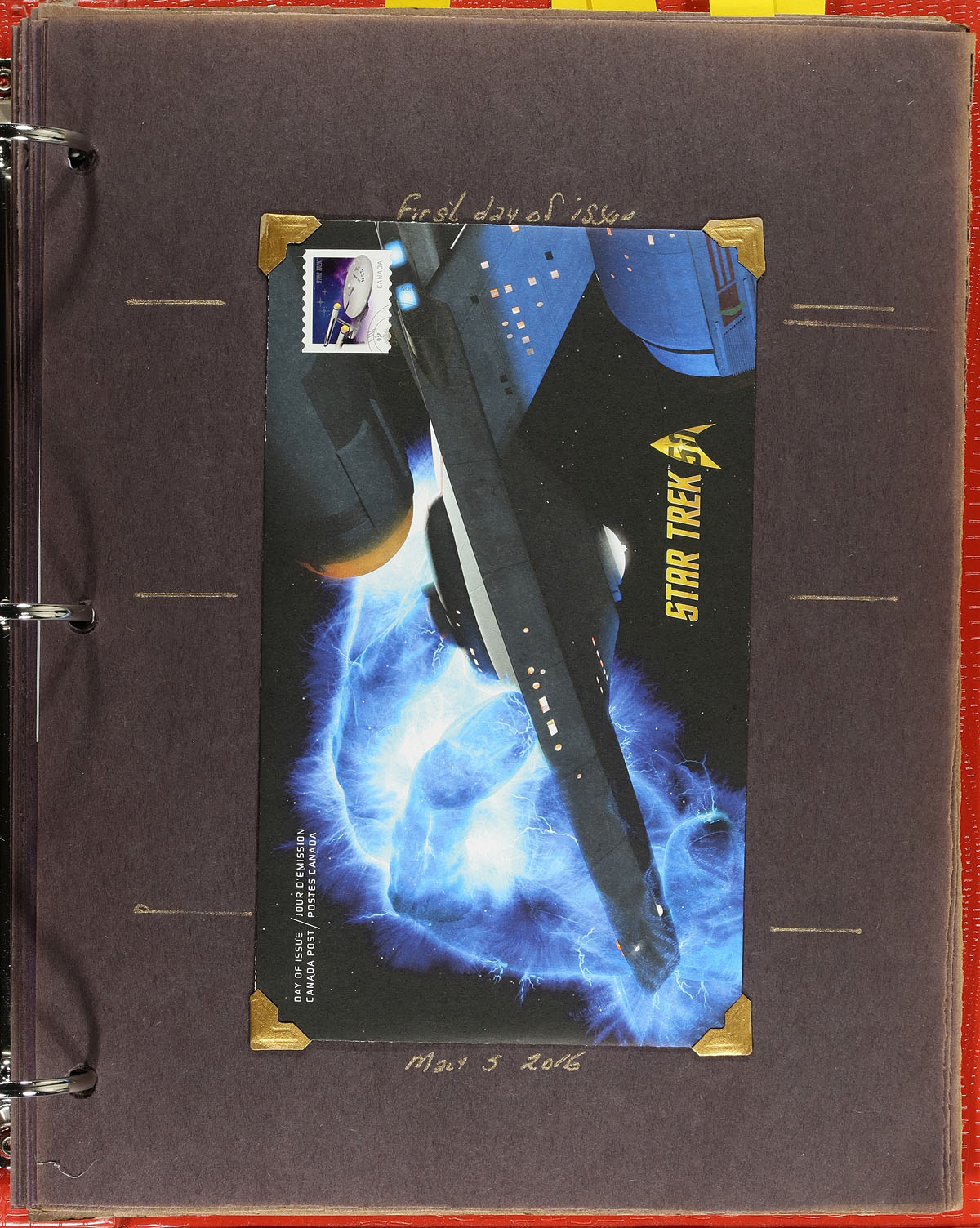 Highly specialized collection of primarily mint never hinged "Star Trek" issues, from May 2016, covering Unitrade #s 2911-2922, all in hingeless mounts in roughly 30 well described pages housed in a binder. The collection contains mint and used souvenir sheets, booklets and part panes, mint and used booklet stamps, coil singles, pairs, strips (including gutter strips), mint and used panes from the uncut press sheet, and roughly 15 first day covers (most having lower mainland B.C. postmarks). We note items cataloguing $15 and up. Face value alone totals $135.00 (noting 75x "P" stamps). A near impossible collection to duplicate, ideal for the Canada or topical collector. 2024 Unitrade =