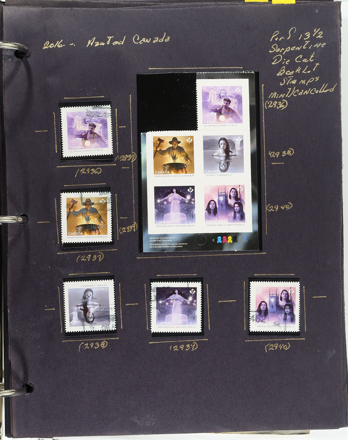 Lovely collection of primarily mint never hinged Canada, from April to September 2016, covering Unitrade #s 2902-2947, all in hingeless mounts in roughly 25 well described pages housed in a binder. The collection primarily contains mint and used booklet stamps, complete booklets and part panes, mint and used souvenir sheets, mint singles, and roughly 10 first day covers (most having lower mainland B.C. postmarks). We note items cataloguing $15 and up. Face value alone totals $188.00 (including 143x "P" stamps). A nice lot for Canada collectors. 2024 Unitrade =