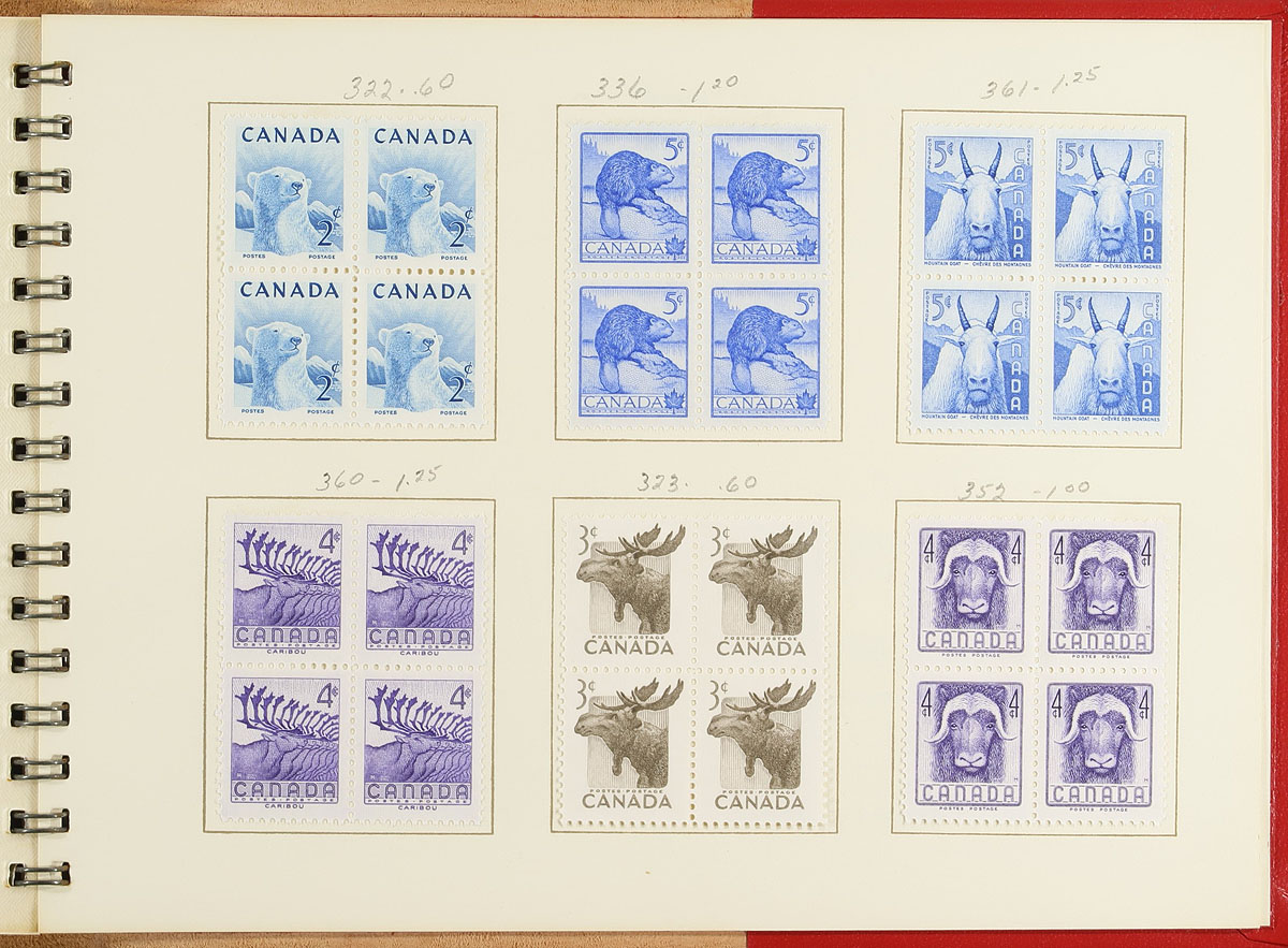 The 1957 UPU Congress Official Prestige Presentation Book issued by Canada Post and given out to delegates at the XIV Congress in Ottawa. Contains mint blocks of 32 different commemorative and definitive issues with face values to $1.00. The old Darnell catalogue lists this book as #SP18. Very rare, this is the second we have handled (the first was sold back in 2008!). Estimate =