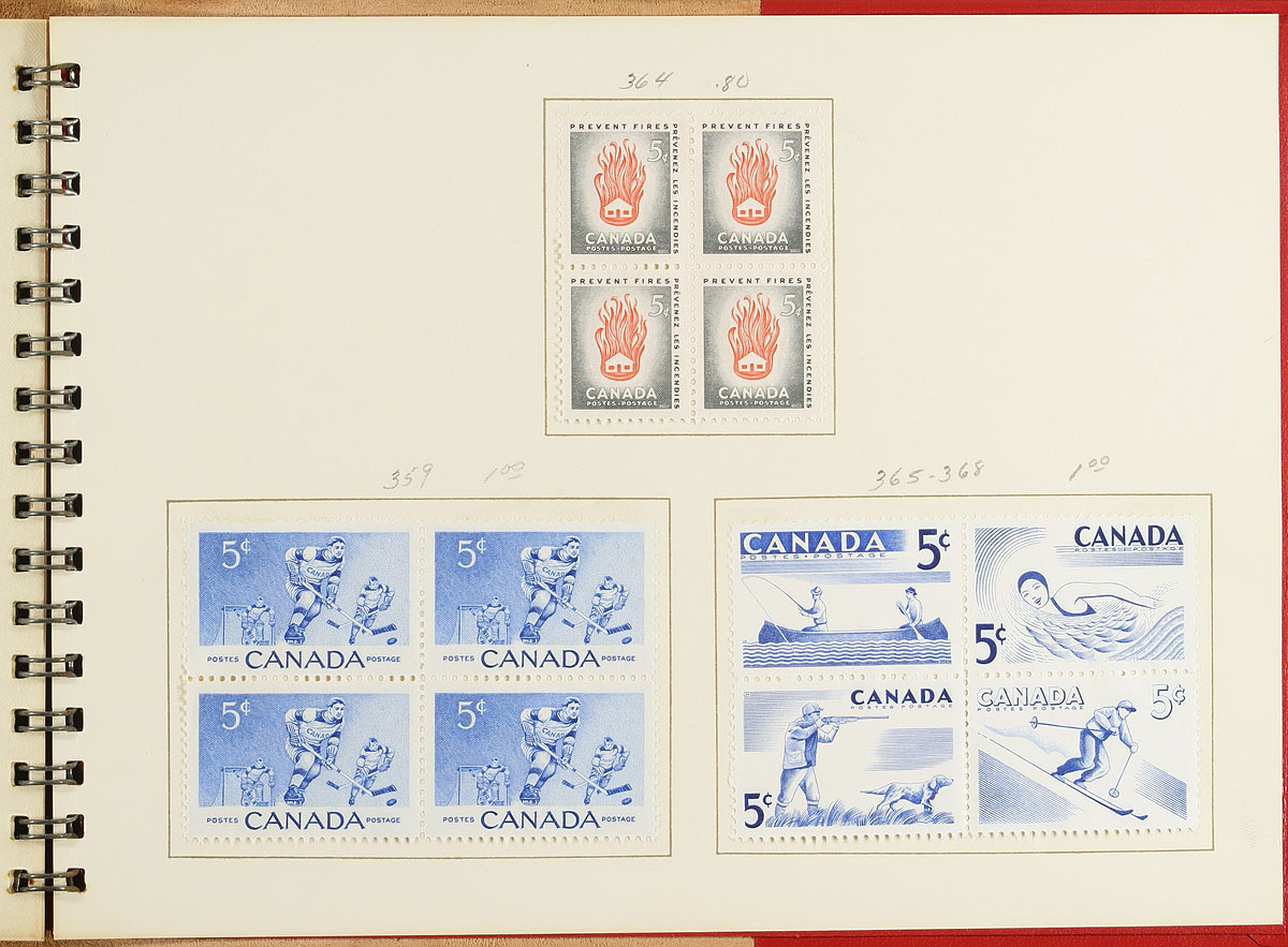 The 1957 UPU Congress Official Prestige Presentation Book issued by Canada Post and given out to delegates at the XIV Congress in Ottawa. Contains mint blocks of 32 different commemorative and definitive issues with face values to $1.00. The old Darnell catalogue lists this book as #SP18. Very rare, this is the second we have handled (the first was sold back in 2008!). Estimate =