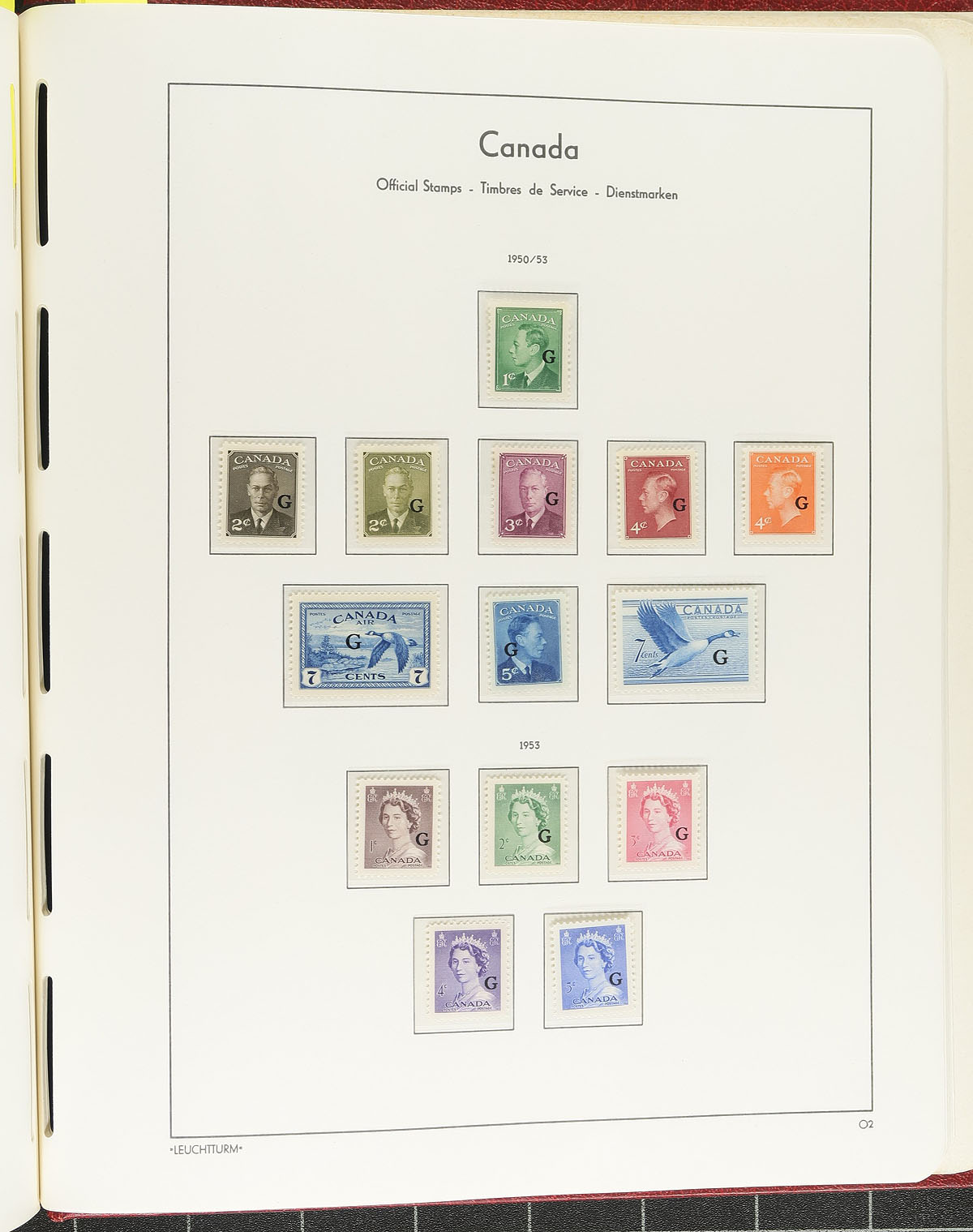 LIGHTHOUSE HINGELESS ALBUM COLLECTION. Primarily mint (hinged and never hinged) collection of Canada in a single red Lighthouse hingeless album with pages for 1851-1975 plus "back of the book". The collection itself ranges from 1870 to 1975, roughly 90-95% complete in period, and includes coil singles and "back of the book" material. The collection begins a 3c Small Queen, then partial set of the Leafs / Numerals, Edwards, Tercentenary, Admirals etc, Expect the earlier to be hinged, eventually transitioning to Never Hinged material in the late George VI/QEII era. Consignor's 2025 total Scott catalogue value totals US$9,238.95 ($12,272.00 CDN)! We note a few faults with the early material, along with some mint stamps having no gum, heavy hinging, or other faults up to the Admiral issues. Still a nice collection with much useful material perfect to build upon, integrate into your own collection or break apart. Well worth our conservative estimate. Estimate =