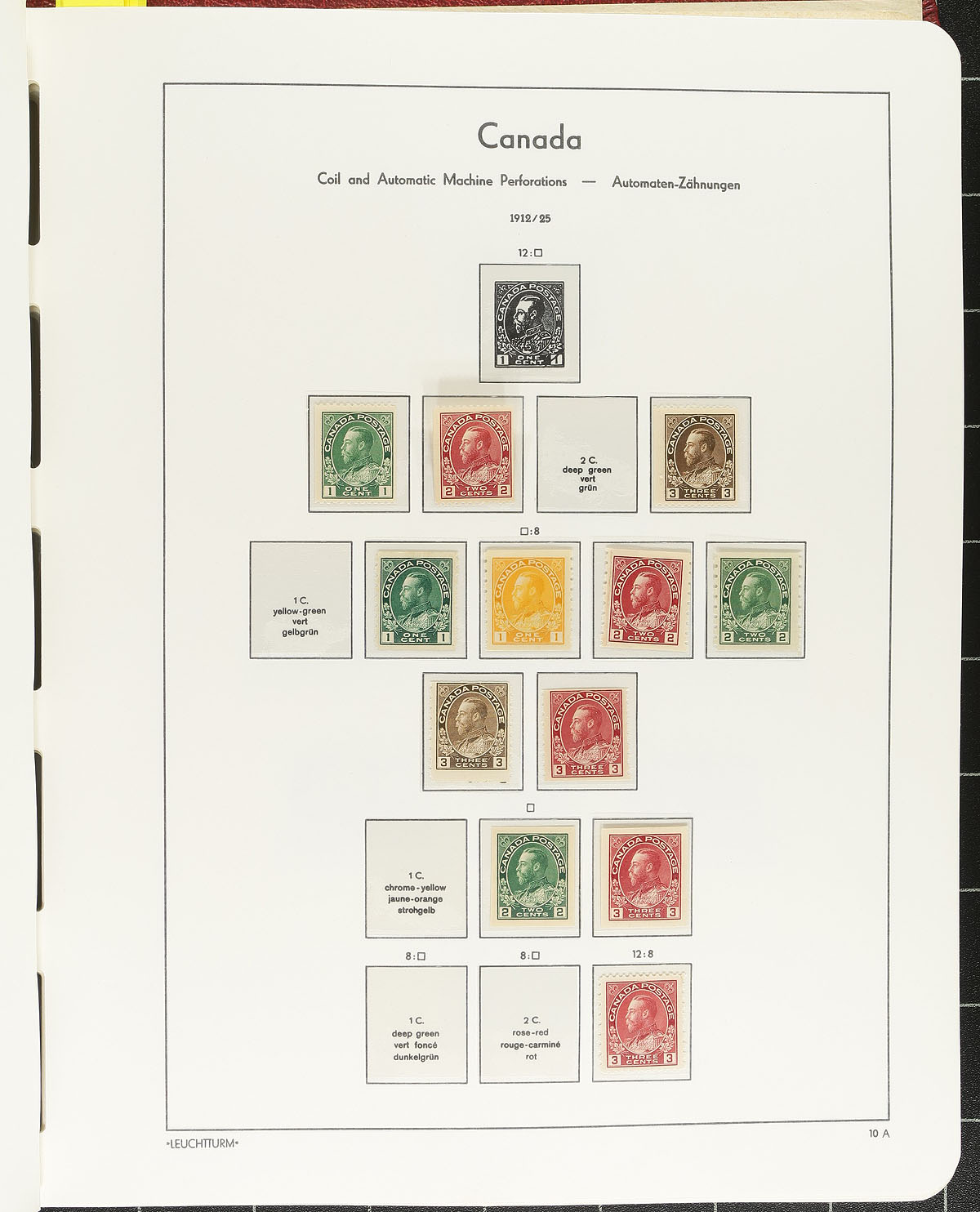 LIGHTHOUSE HINGELESS ALBUM COLLECTION. Primarily mint (hinged and never hinged) collection of Canada in a single red Lighthouse hingeless album with pages for 1851-1975 plus "back of the book". The collection itself ranges from 1870 to 1975, roughly 90-95% complete in period, and includes coil singles and "back of the book" material. The collection begins a 3c Small Queen, then partial set of the Leafs / Numerals, Edwards, Tercentenary, Admirals etc, Expect the earlier to be hinged, eventually transitioning to Never Hinged material in the late George VI/QEII era. Consignor's 2025 total Scott catalogue value totals US$9,238.95 ($12,272.00 CDN)! We note a few faults with the early material, along with some mint stamps having no gum, heavy hinging, or other faults up to the Admiral issues. Still a nice collection with much useful material perfect to build upon, integrate into your own collection or break apart. Well worth our conservative estimate. Estimate =