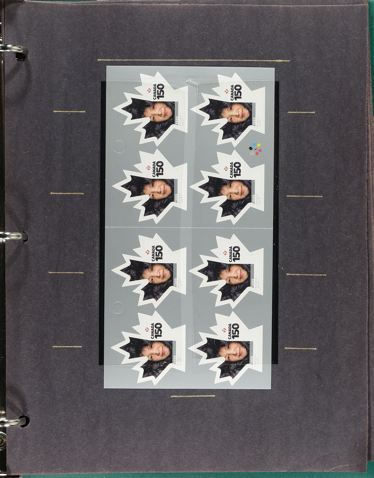 Collection of primarily mint never hinged Canada, May to June, 2017, covering Unitrade #s 2992/2998 (missing a few issues), all in hingeless mounts in roughly 30 well described pages housed in a binder. The collection primarily contains complete booklets, mint and used souvenir sheets, mint and used singles, and roughly 15 official first day covers. We note items cataloguing $15 and up. Face value alone totals $111.00 (including 90x "P" stamps). A nice lot for Canada collectors. 2024 Unitrade =
