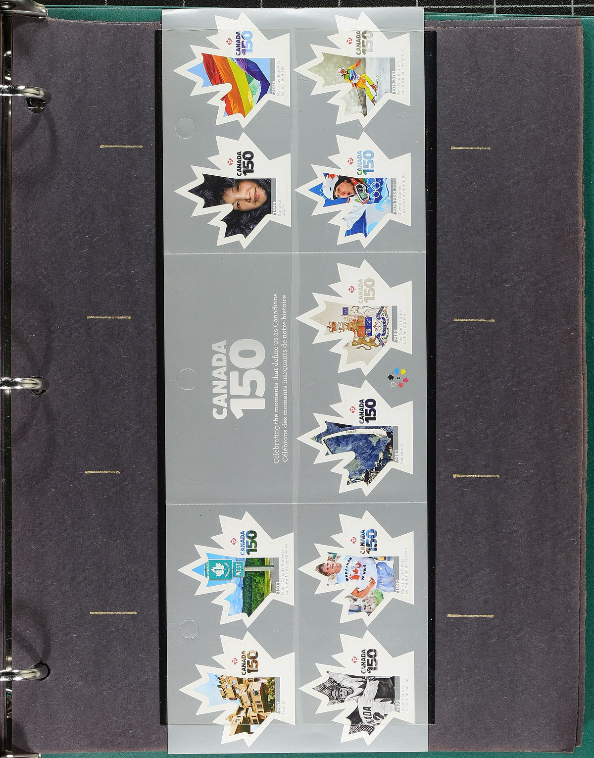 Collection of primarily mint never hinged Canada, May to June, 2017, covering Unitrade #s 2992/2998 (missing a few issues), all in hingeless mounts in roughly 30 well described pages housed in a binder. The collection primarily contains complete booklets, mint and used souvenir sheets, mint and used singles, and roughly 15 official first day covers. We note items cataloguing $15 and up. Face value alone totals $111.00 (including 90x "P" stamps). A nice lot for Canada collectors. 2024 Unitrade =