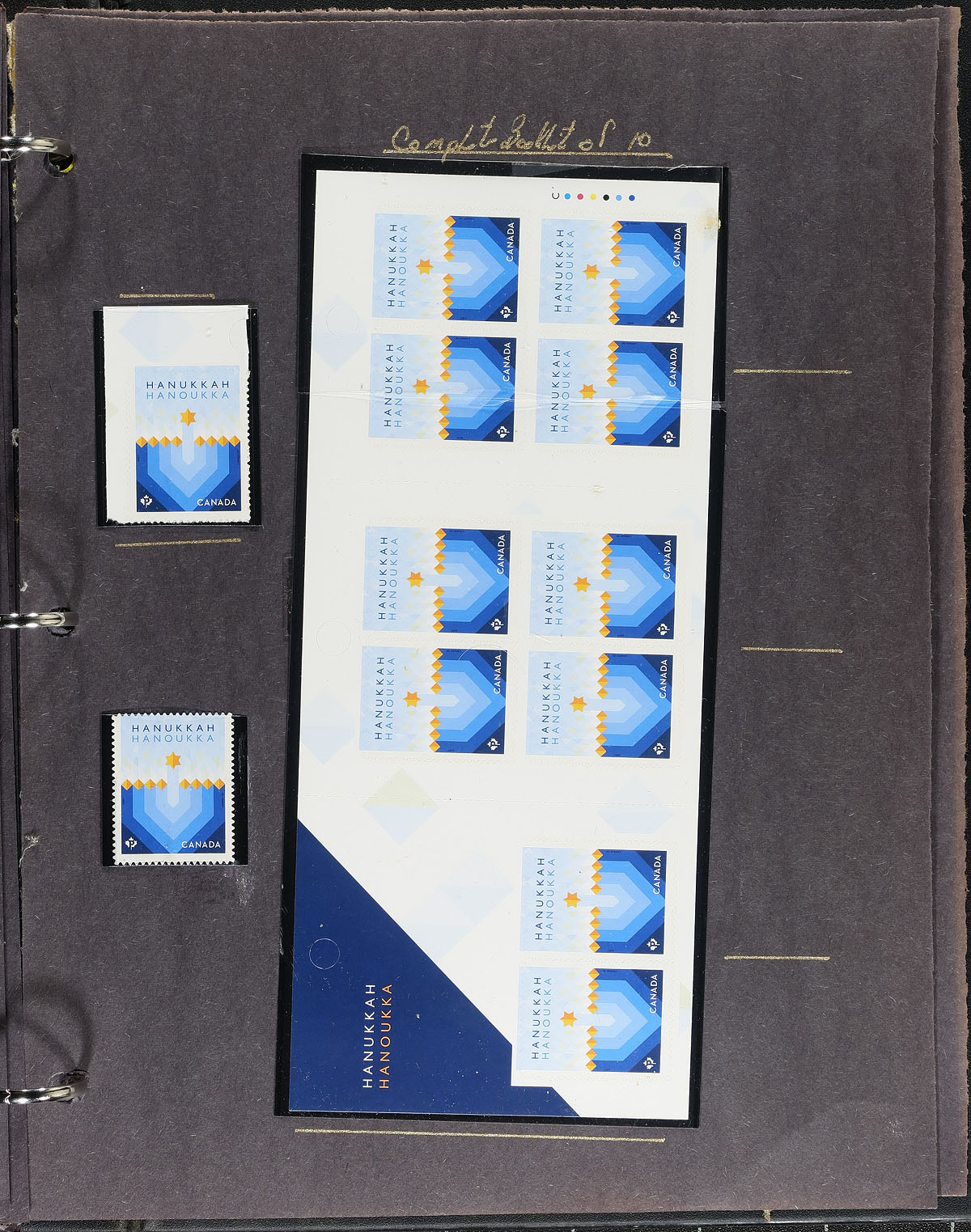 Collection of primarily mint never hinged Canada, October to November, 2017, covering Unitrade #s 3038-3044, 3050-3051, all in hingeless mounts in roughly 20 well described pages housed in a binder. The collection primarily contains complete booklets, mint and used souvenir sheets, mint and used singles, and some first day covers. We note items cataloguing $15 and up. Face value alone totals $140.00 (including 109x "P" stamps). A nice lot for Canada collectors. 2024 Unitrade =