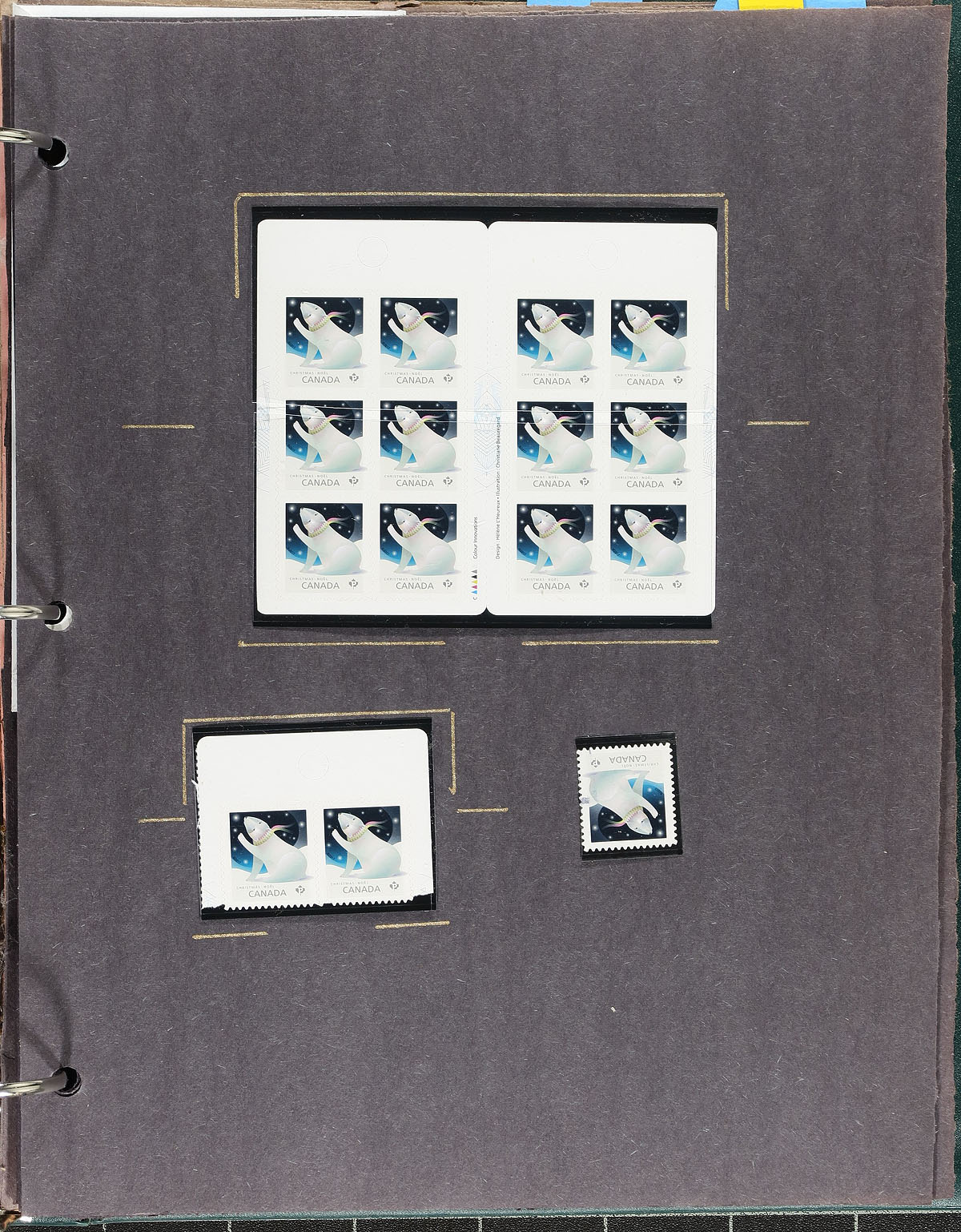 Clean collection of primarily mint never hinged "Christmas" issues, November 2017, covering Unitrade #s 3045-3049, all in hingeless mounts in roughly 12 well described pages housed in a binder. The collection primarily contains booklets, part panes, mint and used booklet singles, souvenir sheet, and a few first day covers. We note a few items cataloguing $15 and up. Face value alone totals $153.00 (including 71x "P" stamps). A nice offering for the Christmas and Canada collector. 2024 Unitrade =