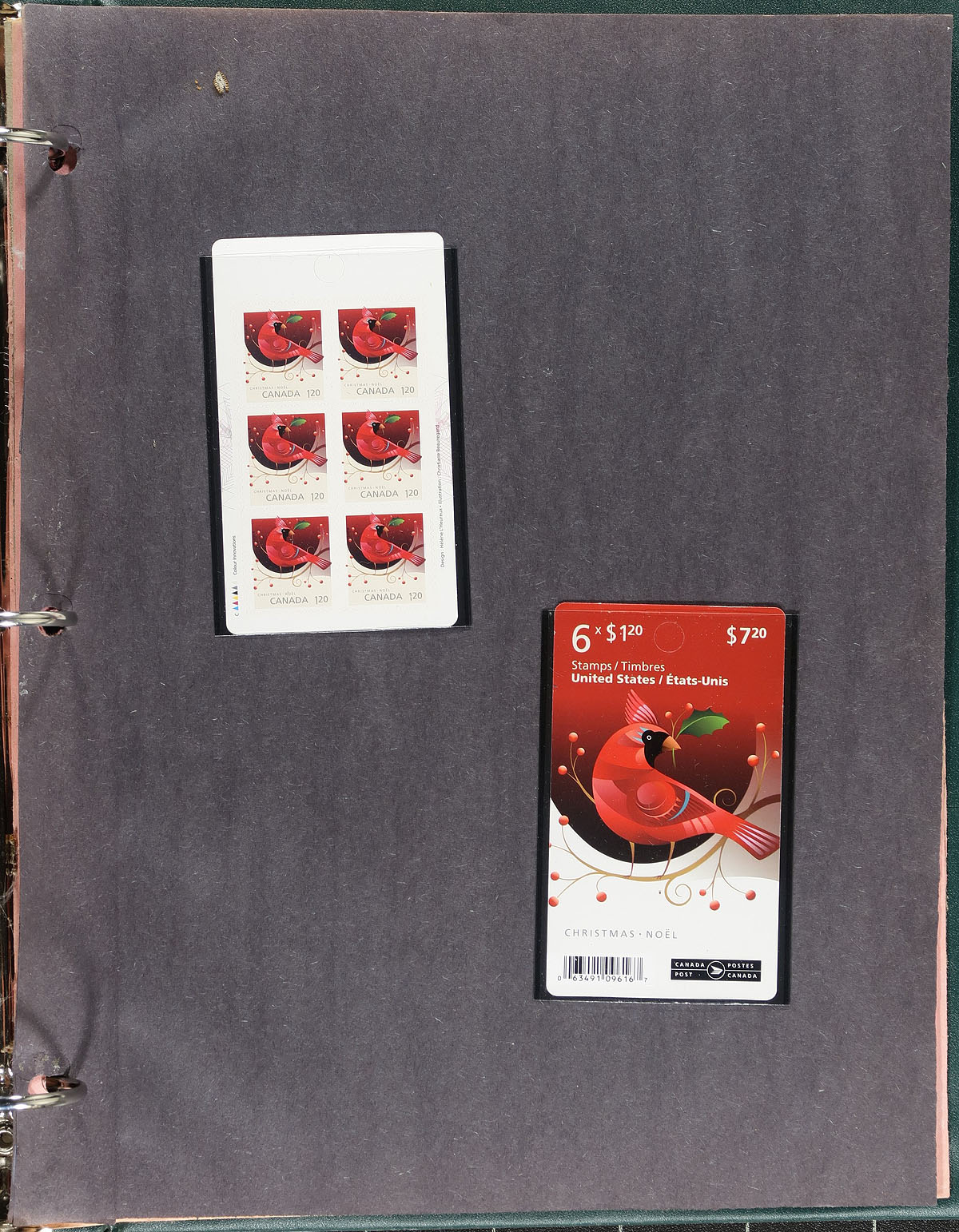 Clean collection of primarily mint never hinged "Christmas" issues, November 2017, covering Unitrade #s 3045-3049, all in hingeless mounts in roughly 12 well described pages housed in a binder. The collection primarily contains booklets, part panes, mint and used booklet singles, souvenir sheet, and a few first day covers. We note a few items cataloguing $15 and up. Face value alone totals $153.00 (including 71x "P" stamps). A nice offering for the Christmas and Canada collector. 2024 Unitrade =