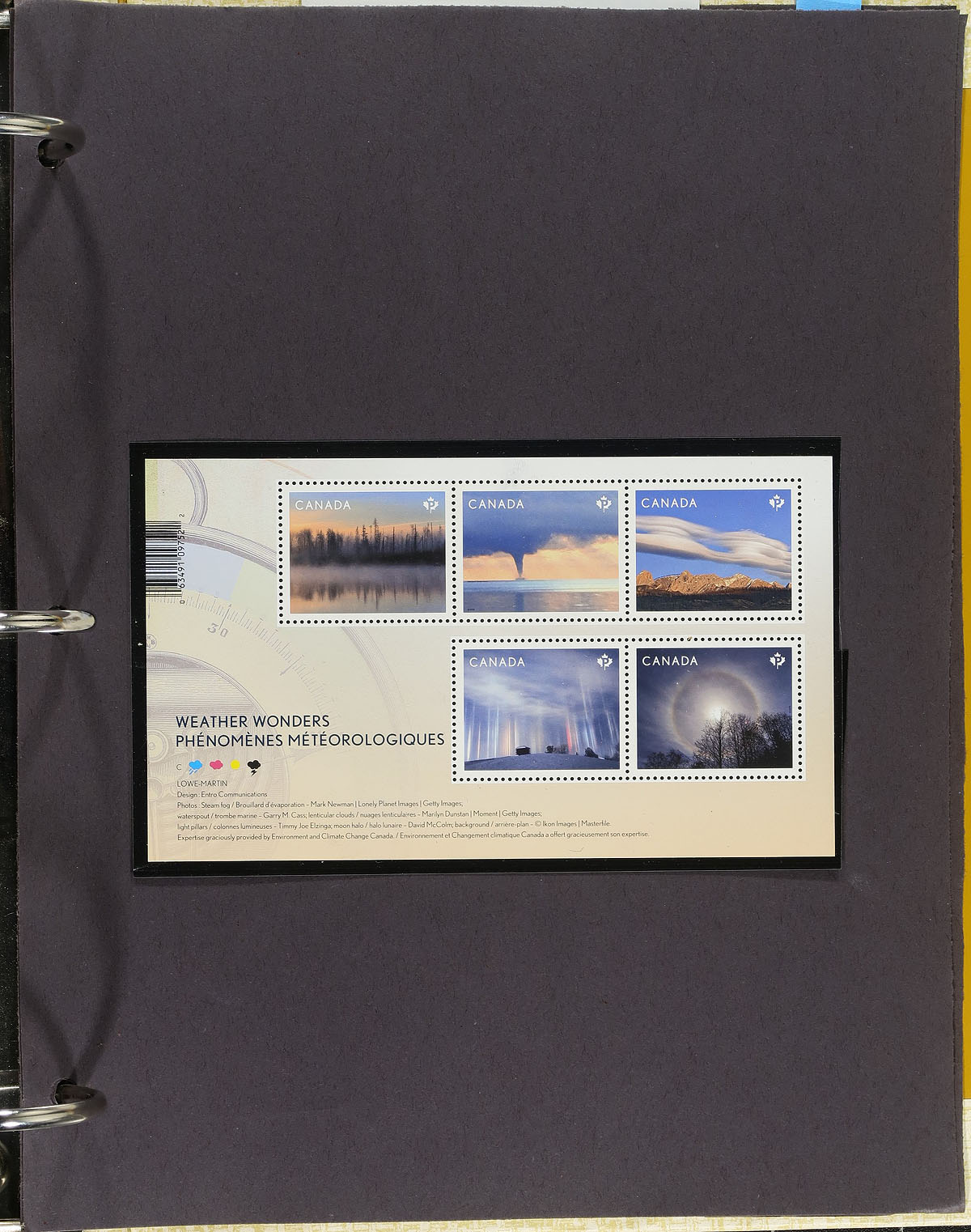 Collection of primarily mint never hinged Canada, April to July, 2018, covering Unitrade #s 3098/3116 (missing a few issues), all in hingeless mounts in roughly 15 pages housed in a binder. The collection primarily contains complete booklets, part panes, mint and used souvenir sheets, and a few first day covers. We note items cataloguing $15 and up. Face value alone totals $163.00 (including 132x "P" stamps). A nice lot for Canada collectors. 2024 Unitrade =