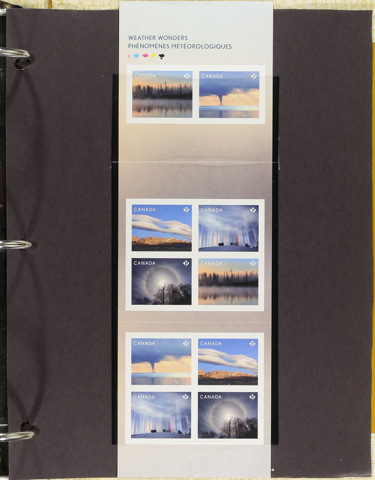 Collection of primarily mint never hinged Canada, April to July, 2018, covering Unitrade #s 3098/3116 (missing a few issues), all in hingeless mounts in roughly 15 pages housed in a binder. The collection primarily contains complete booklets, part panes, mint and used souvenir sheets, and a few first day covers. We note items cataloguing $15 and up. Face value alone totals $163.00 (including 132x "P" stamps). A nice lot for Canada collectors. 2024 Unitrade =