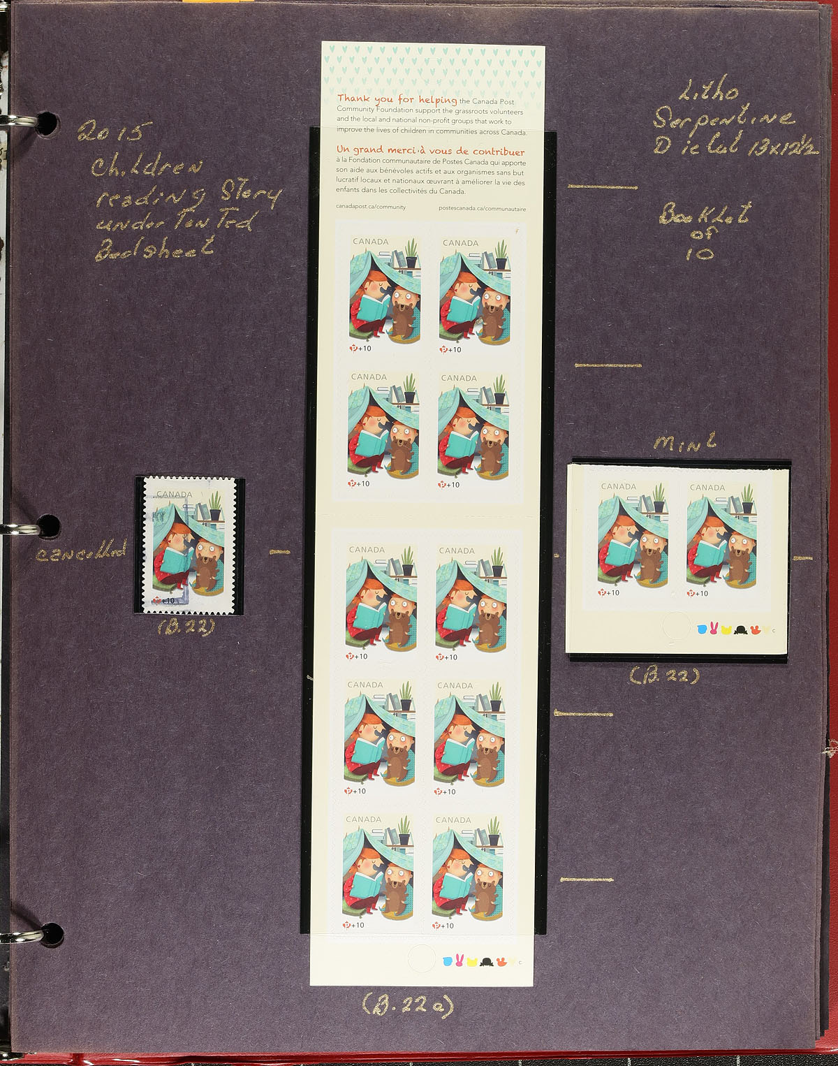 Collection of primarily mint never hinged Canada "Semi-Postal" issues from 2015-2017, 2019 issues, covering Unitrade #s B22-B26, B28-B29, all in hingeless in roughly 20 pages housed in a binder. The lot primarily contains booklets, part panes, singles, and some first day covers.. Face value alone totals $164.00 (noting 133x "P" stamps). A clean collection for all collectors. 2024 Unitrade =