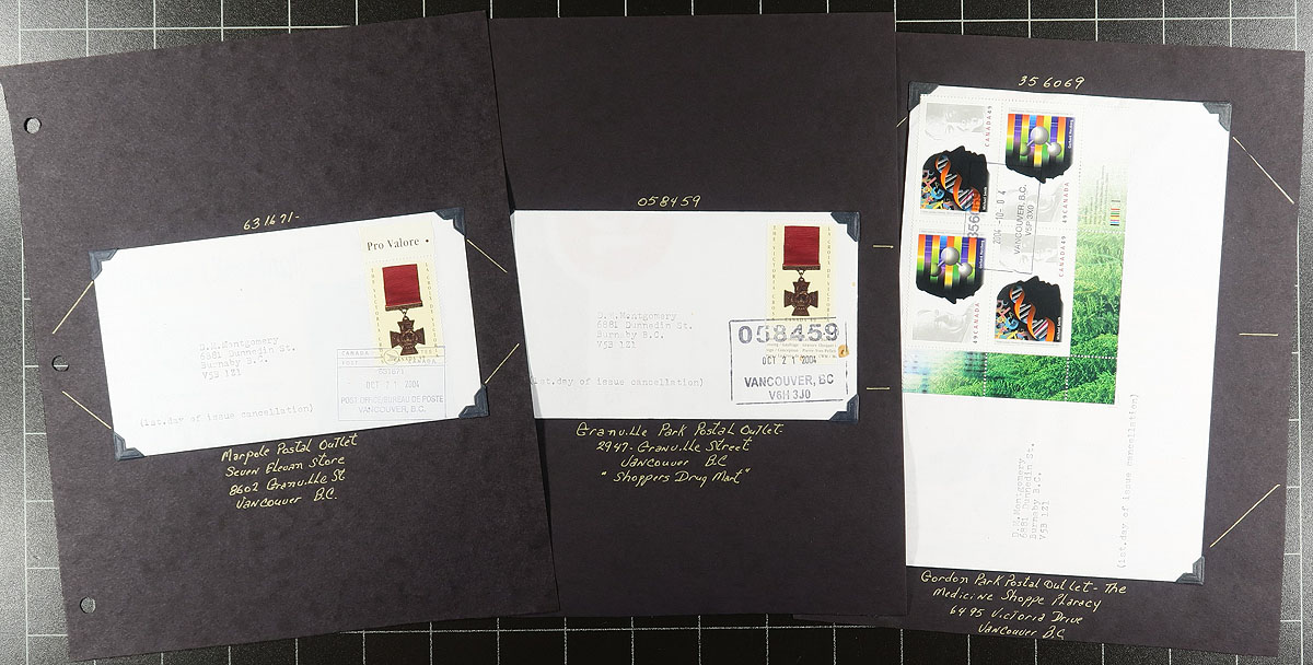 British Columbia Postmarks / FDC Part B. Collection of Canada first day covers filling a Uhaul carton. The collection contains many hundreds of covers from issues ranging in years 2004 to 2008, with each cover on a well described page, noting singles, plate blocks, and souvenir sheet frankings. The lot contains no official first day covers, as the collector meticulously collected first day covers with Vancouver and lower mainland postmarks, with most pages indicating the variety of postal outlets. Some issues have up to 10 first day covers (from a variety of different cities or outlets within each city). Ideal for the first day cover or British Columbia postmark collector, as this would be a near impossible collection to duplicate. Estimate =