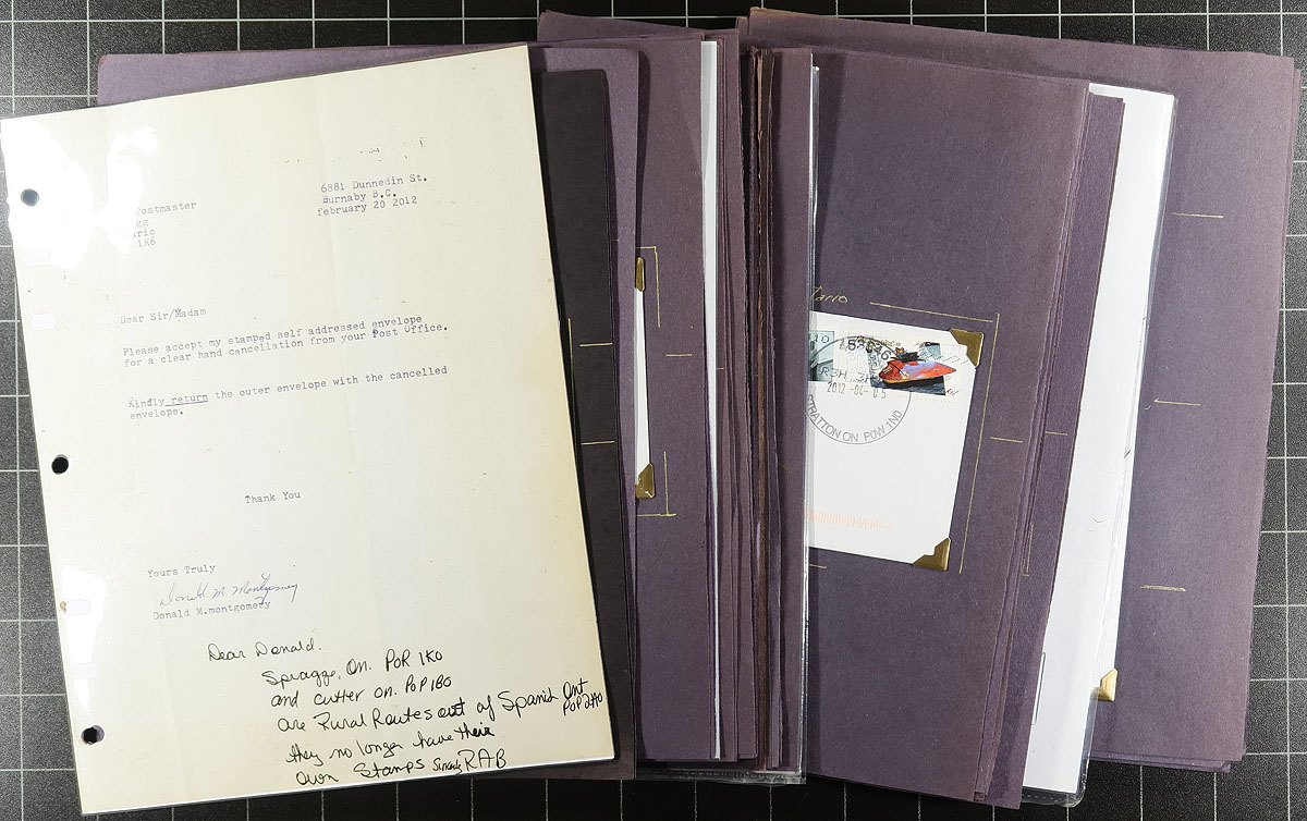 Consignment remainders containing roughly 200 covers from a collector's journey trying to get a postmark from every conceivable Post Office. We note representation from Ontario (mainly "S" towns, including Sharon Postal Outlet, Spragg, Depot 3 Stoney Creek, etc), Manitoba (noting Snowflake, Winklet, and more), and roughly 50 covers from Alberta having Edmonton postmarks. The lot also contains some postmaster letters, with material generally ranging from the 1970s to 2015, noting CDS, Klussendorf, POCON types, and other cancellations. A few faults with a few of the covers, still a nice lot for the Canada post mark collector. Estimate =