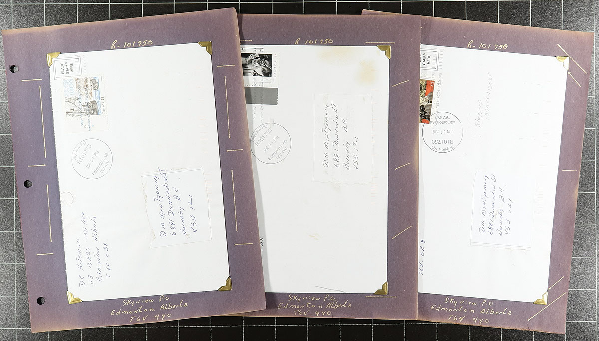 Consignment remainders containing roughly 200 covers from a collector's journey trying to get a postmark from every conceivable Post Office. We note representation from Ontario (mainly "S" towns, including Sharon Postal Outlet, Spragg, Depot 3 Stoney Creek, etc), Manitoba (noting Snowflake, Winklet, and more), and roughly 50 covers from Alberta having Edmonton postmarks. The lot also contains some postmaster letters, with material generally ranging from the 1970s to 2015, noting CDS, Klussendorf, POCON types, and other cancellations. A few faults with a few of the covers, still a nice lot for the Canada post mark collector. Estimate =