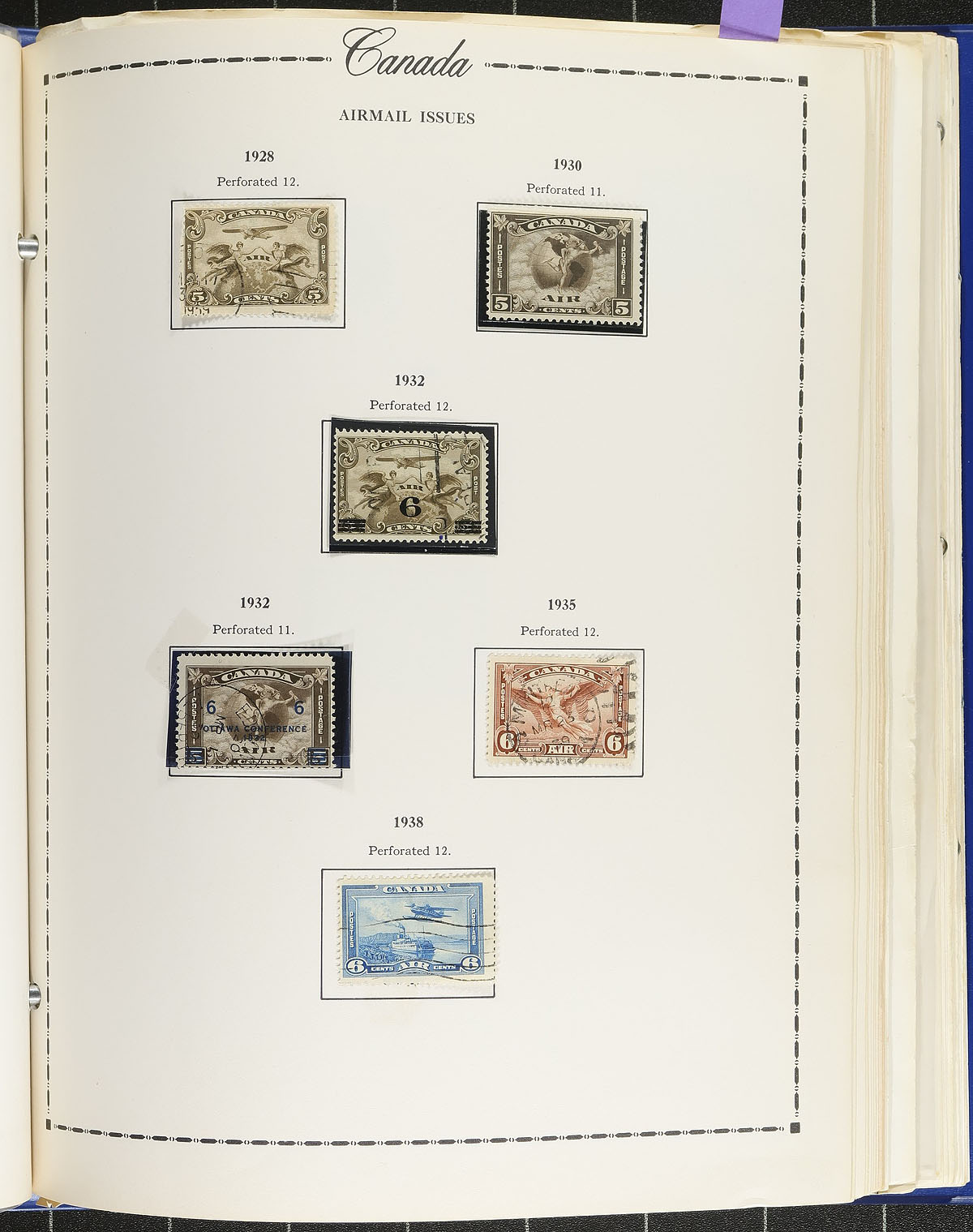 Terrific large collection / accumulation of primarily used Canada in a variety of formats filling a box. The main collection contains several hundreds of stamps in The Heritage Canadian Stamp Album, with material ranging from the Small Queens to 1980's, noting 40 used Small Queens (including 20c and 50c Widow Weeds), Jubilees 1c to 5c, partial sets of Leafs, Numerals, Edwards, Quebecs, Admirals, with full sets of Scrolls, Pictorials, War, and Peace issues. along with Airmails, Special Delivery, and more. The lot continues with a 32 page stockbook containing many hundreds of mint plate blocks (1950's-1960's), a 16 page stockbook containing an accumulation of high denomination used issues from the 1950's-1970's, and used accumulations of thousands of used stamps from the 1950's up to 2000 (noting postmarks from western provinces). The lot also includes a 2019 Unitrade catalogue, supplies, and roughly 500 slogan cancels (cut down from envelopes). A nice opportunity for Canada and postmark collectors, as we note many items cataloguing $5 to $15 and up. Our online photos show a sampling and an overview. Estimate =