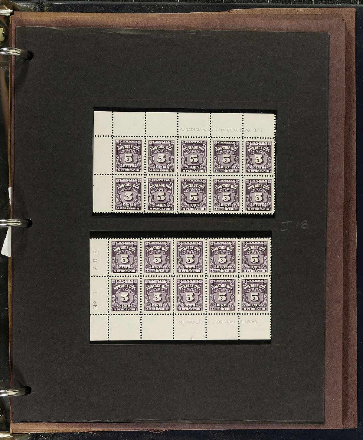 Collection of primarily mint Canada "Postage Due" issues, ranging from J2/J27 (majority of material from J15-J27), containing singles, pairs, and plate blocks of 10. Most of the material is in hingeless mounts, in roughly 20 pages, housed in a binder, noting lightly hinged stamps, or in the selvedge. A nice lot for the "back of the book" collector. 2024 Unitrade =