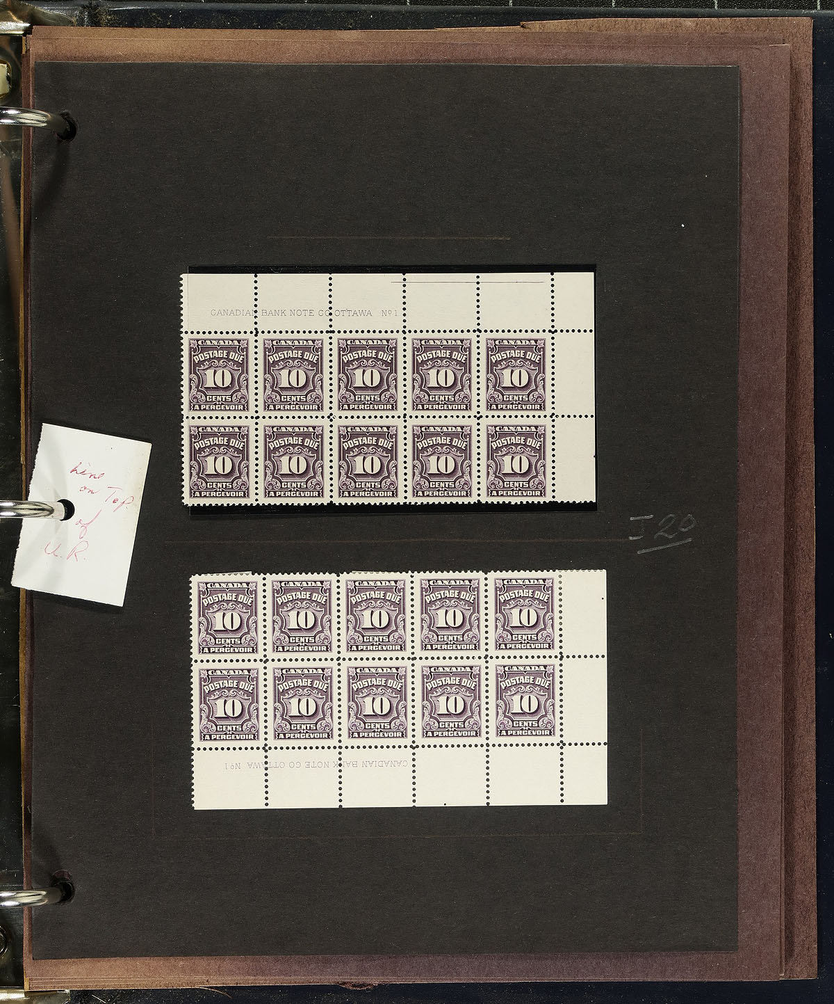 Collection of primarily mint Canada "Postage Due" issues, ranging from J2/J27 (majority of material from J15-J27), containing singles, pairs, and plate blocks of 10. Most of the material is in hingeless mounts, in roughly 20 pages, housed in a binder, noting lightly hinged stamps, or in the selvedge. A nice lot for the "back of the book" collector. 2024 Unitrade =