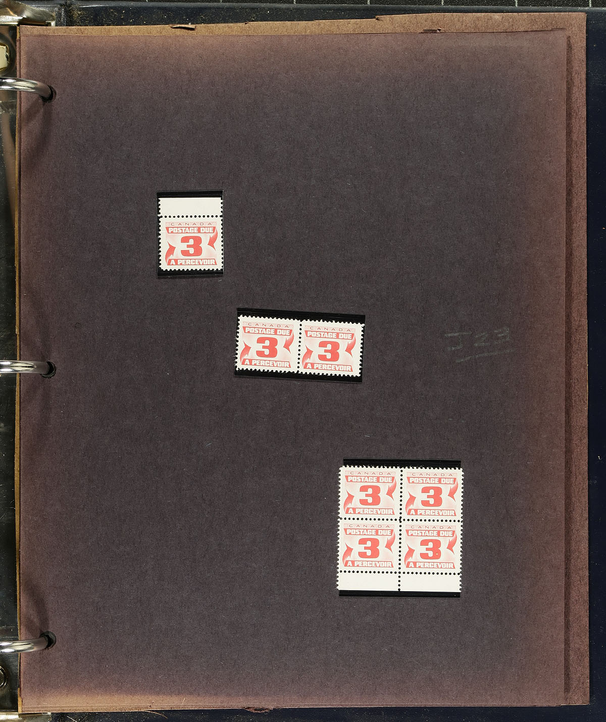 Collection of primarily mint Canada "Postage Due" issues, ranging from J2/J27 (majority of material from J15-J27), containing singles, pairs, and plate blocks of 10. Most of the material is in hingeless mounts, in roughly 20 pages, housed in a binder, noting lightly hinged stamps, or in the selvedge. A nice lot for the "back of the book" collector. 2024 Unitrade =