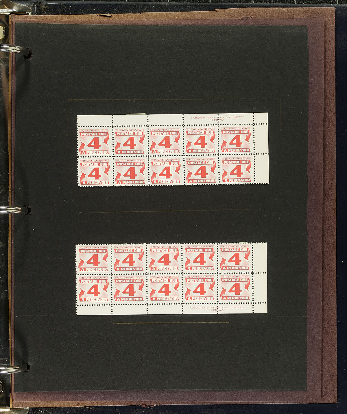 Collection of primarily mint Canada "Postage Due" issues, ranging from J2/J27 (majority of material from J15-J27), containing singles, pairs, and plate blocks of 10. Most of the material is in hingeless mounts, in roughly 20 pages, housed in a binder, noting lightly hinged stamps, or in the selvedge. A nice lot for the "back of the book" collector. 2024 Unitrade =