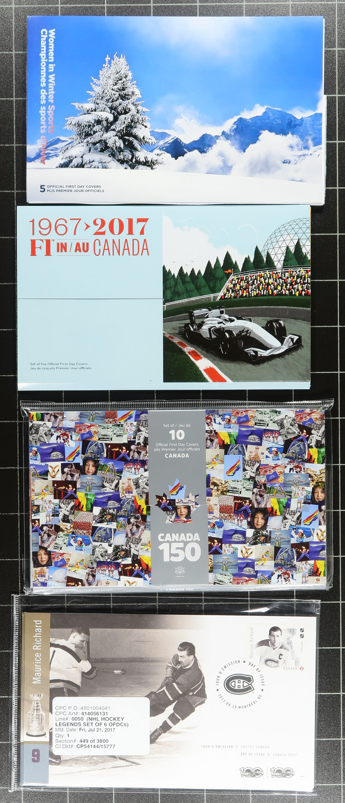 First Day Covers. Lovely group of modern Canada first day covers, 2017-2019, containing roughly 70 covers, some still in presentation packs sealed from the philatelic service. The lot includes sealed packs of Star Trek (Unitrade #2984-#2990), Canada 150 (Unitrade #3000-#3009), to name a few, along with singles, sets, and souvenir sheet frankings. We note a few first day covers cataloguing $10 and up each. A nice clean lot for all collectors. 2024 Unitrade =