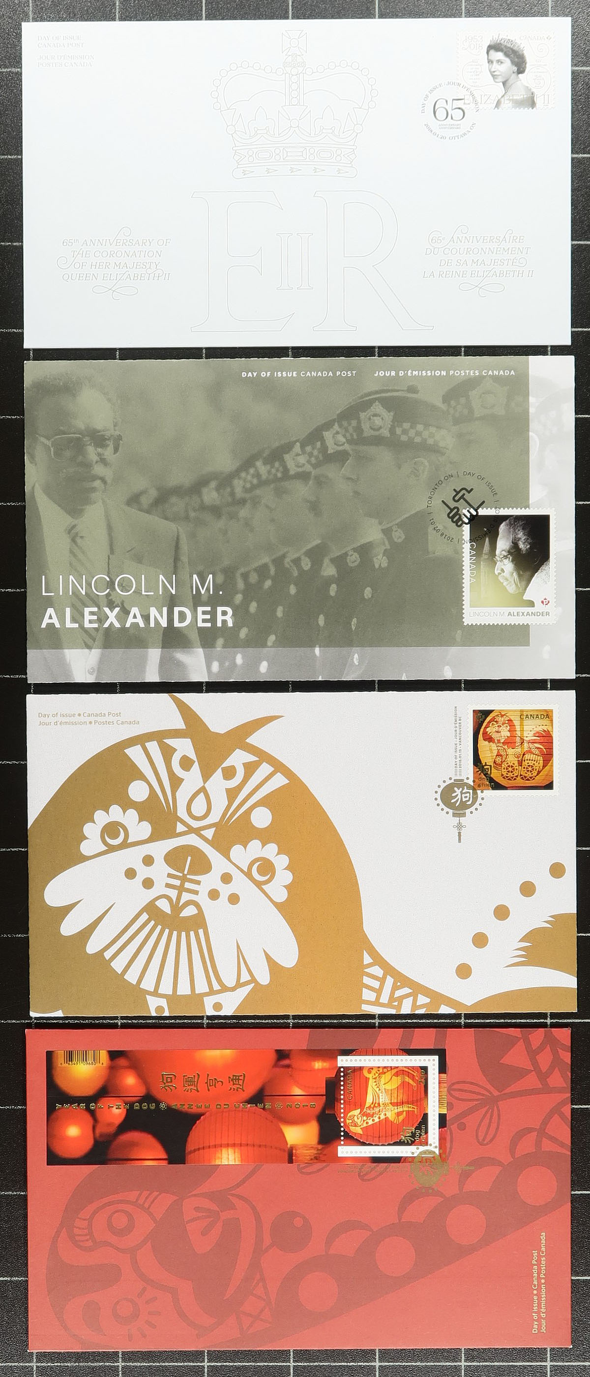 First Day Covers. Lovely group of modern Canada first day covers, 2017-2019, containing roughly 70 covers, some still in presentation packs sealed from the philatelic service. The lot includes sealed packs of Star Trek (Unitrade #2984-#2990), Canada 150 (Unitrade #3000-#3009), to name a few, along with singles, sets, and souvenir sheet frankings. We note a few first day covers cataloguing $10 and up each. A nice clean lot for all collectors. 2024 Unitrade =