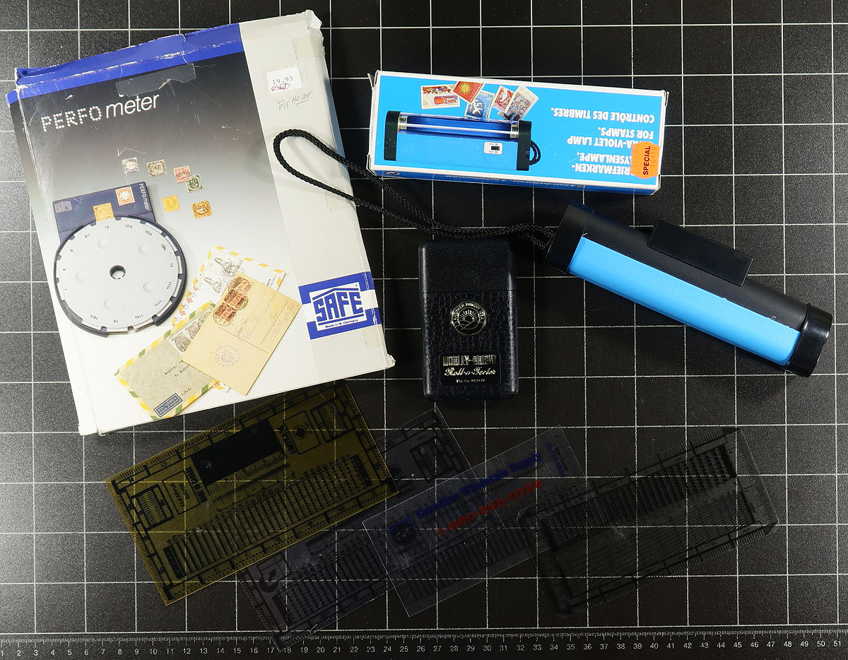 Gently used supplies filling a carton, of note a few stock books, roughly 70 manila stock pages, roughly 100 Vario-style stock pages (various configurations), several mounts with large guillotine, perforation gauges, Unity supplemental pages from 2000-2012, and more. A useful group, waiting for a new owner. Estimate =